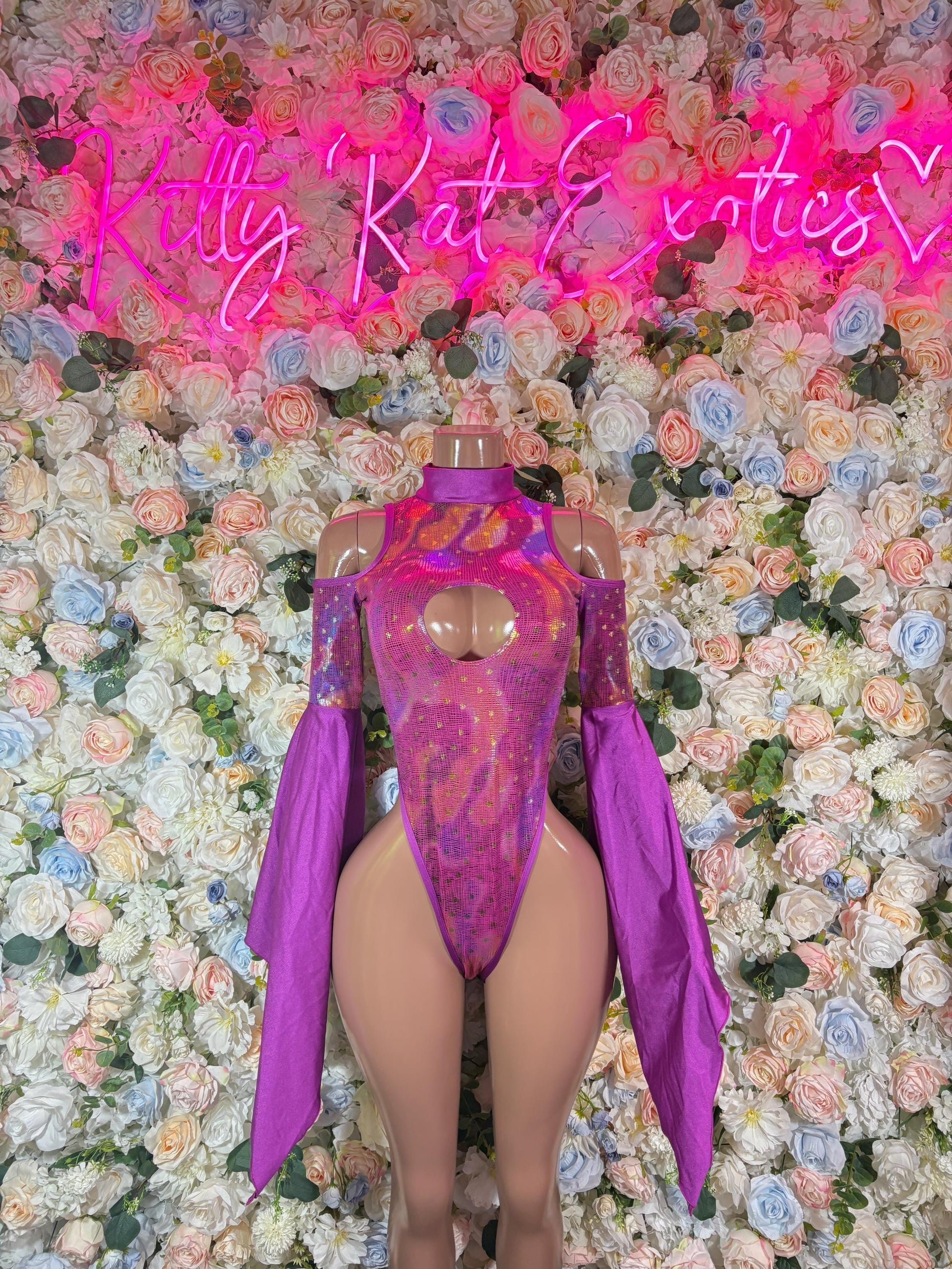 Festival Costume One Piece Bodysuit Purple Metallic - Rave Outfits Costume, Latin Sultry, Bold Dance Outfit