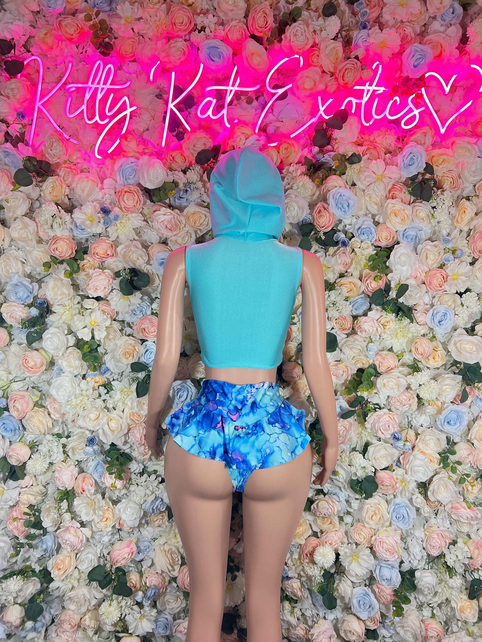 Festival Costume Two Piece with Hood Blue - Rave Outfits Costume, Latin Sultry, Bold Dance Outfit