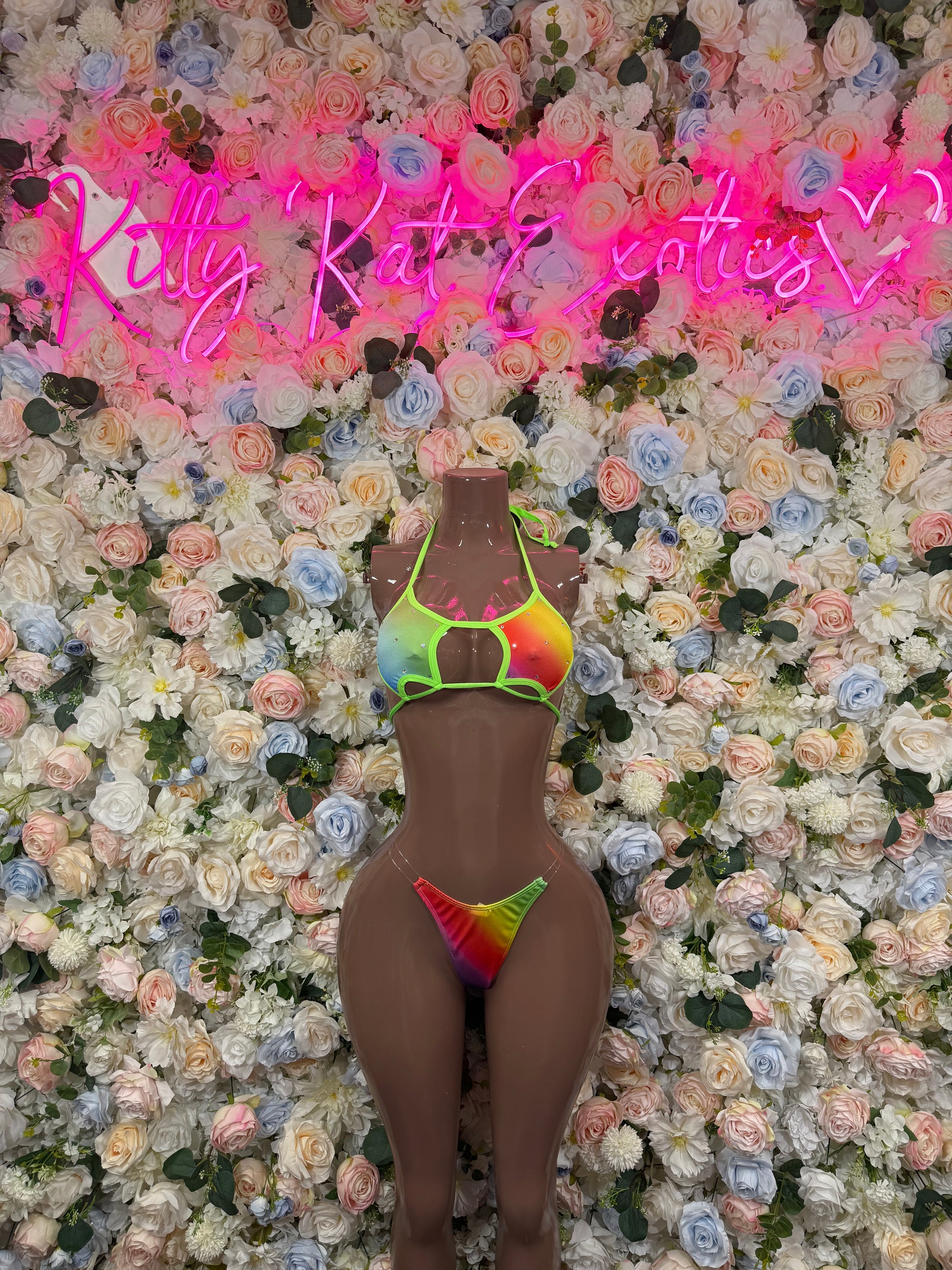 Festival Outfit Two Piece Bikini Set – Multicolor Rave Costume for Women, Exotic Dancewear, EDM Music Festival Clothing, Party Performance Outfit