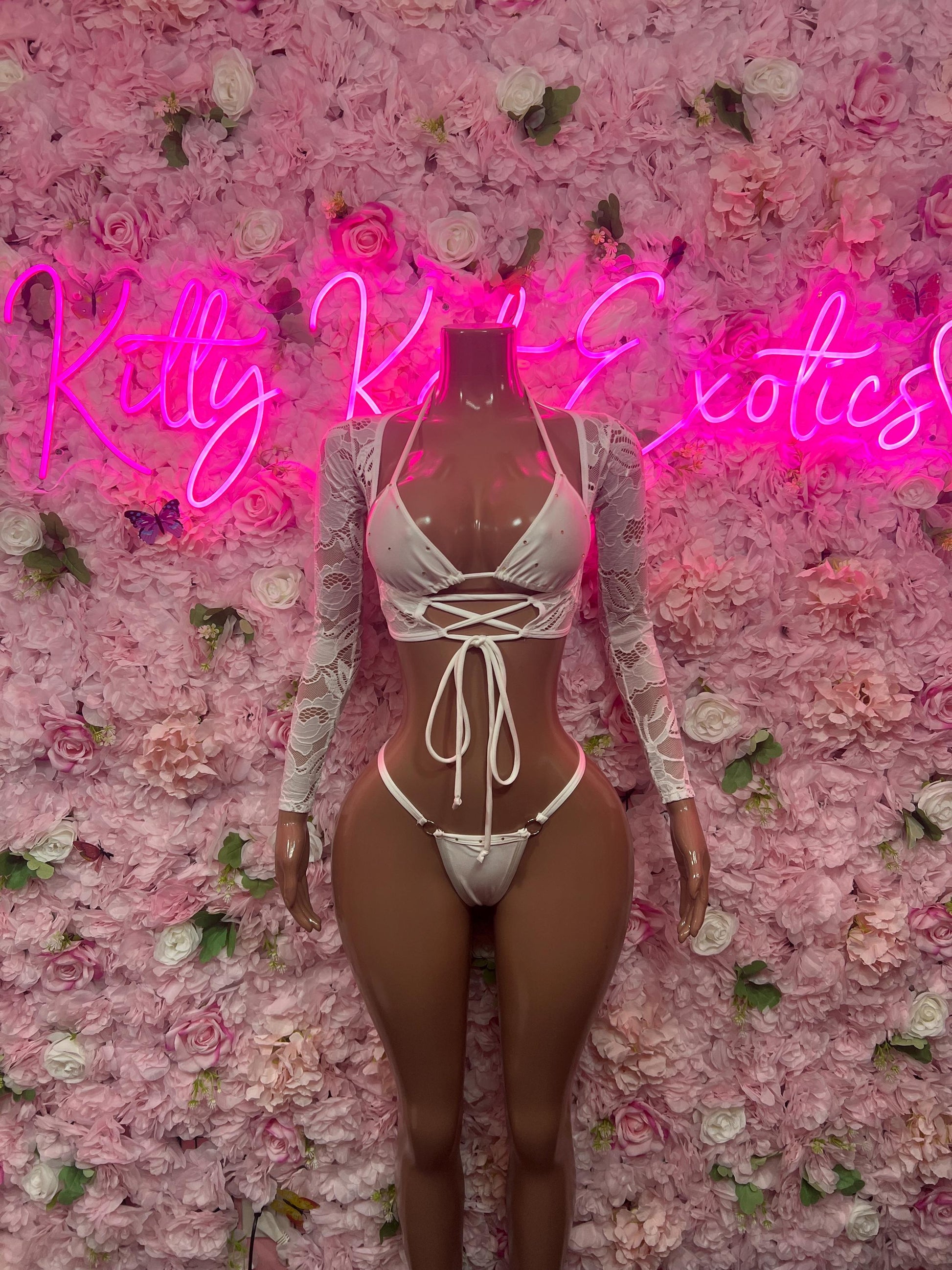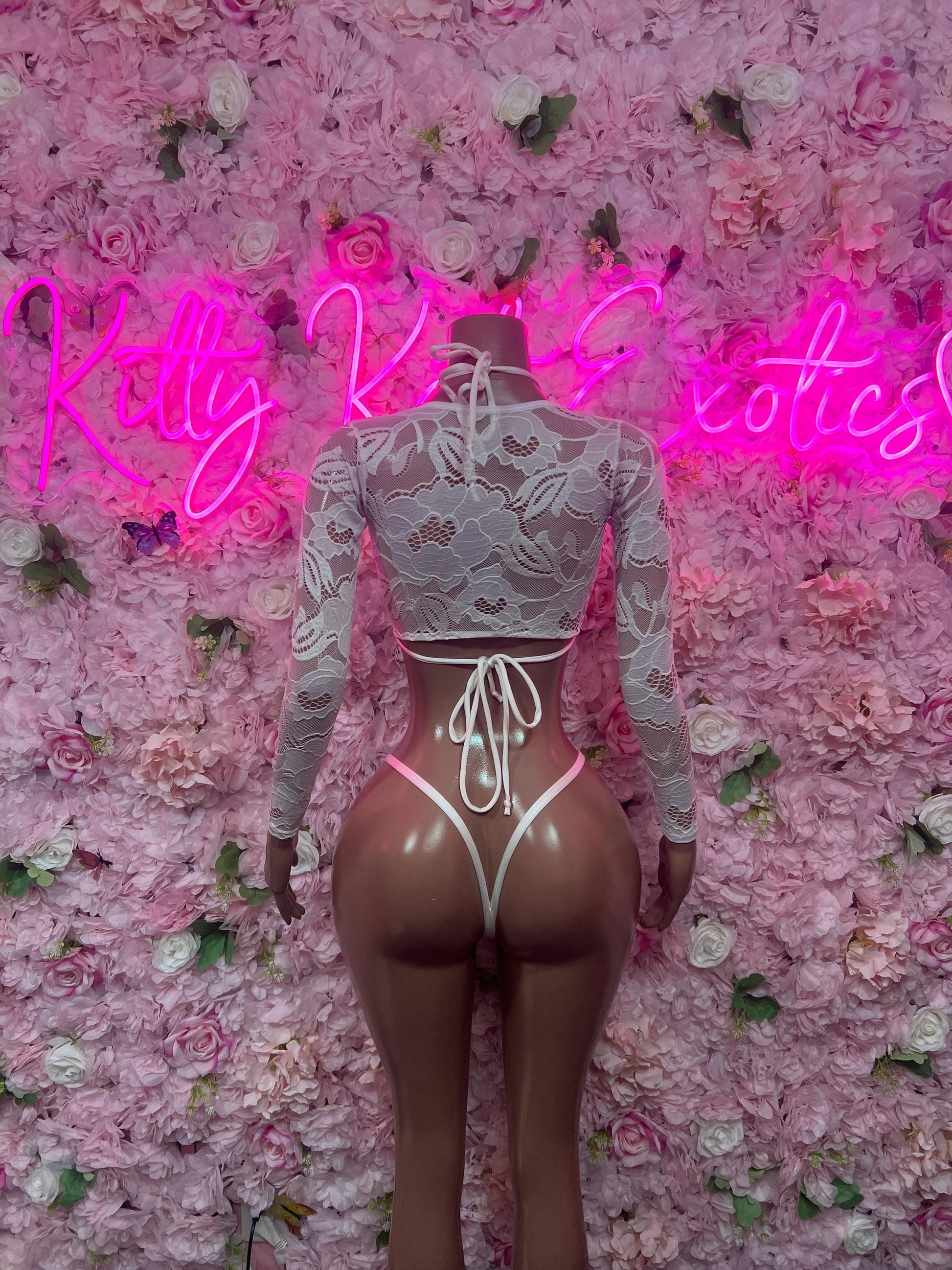 Festival Two Piece Sleeved White Exotic Dancewear Bottlegirl Fedtival wear Bartender Outfit