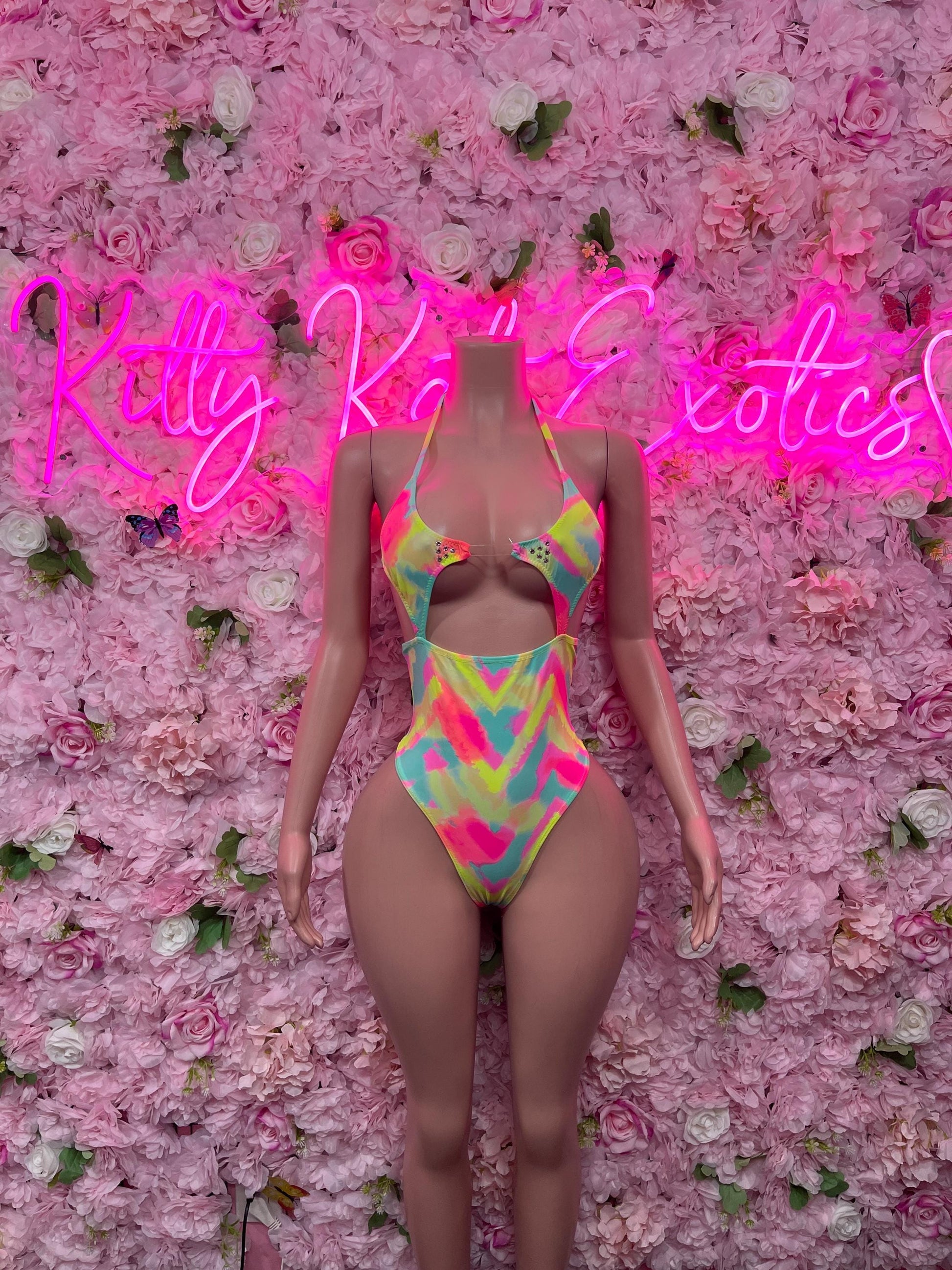Festival Wear One Piece Multicolor Bodysuit Exotic Dancewear for Performers, Raves, or Night Out | Sexy and Flattering Style