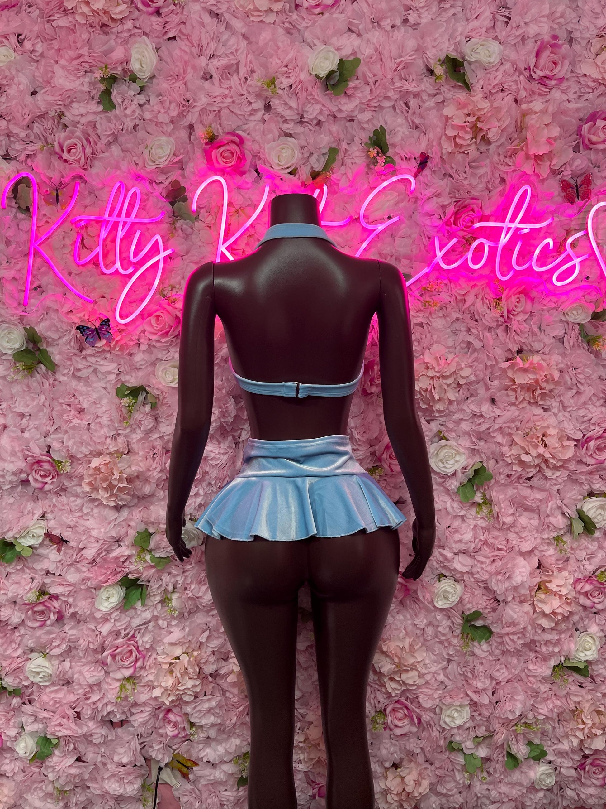 Festival Wear Two Piece Baby Blue Skirt Set Exotic Dancewear for Performers, Raves, or Night Out | Sexy and Flattering Style