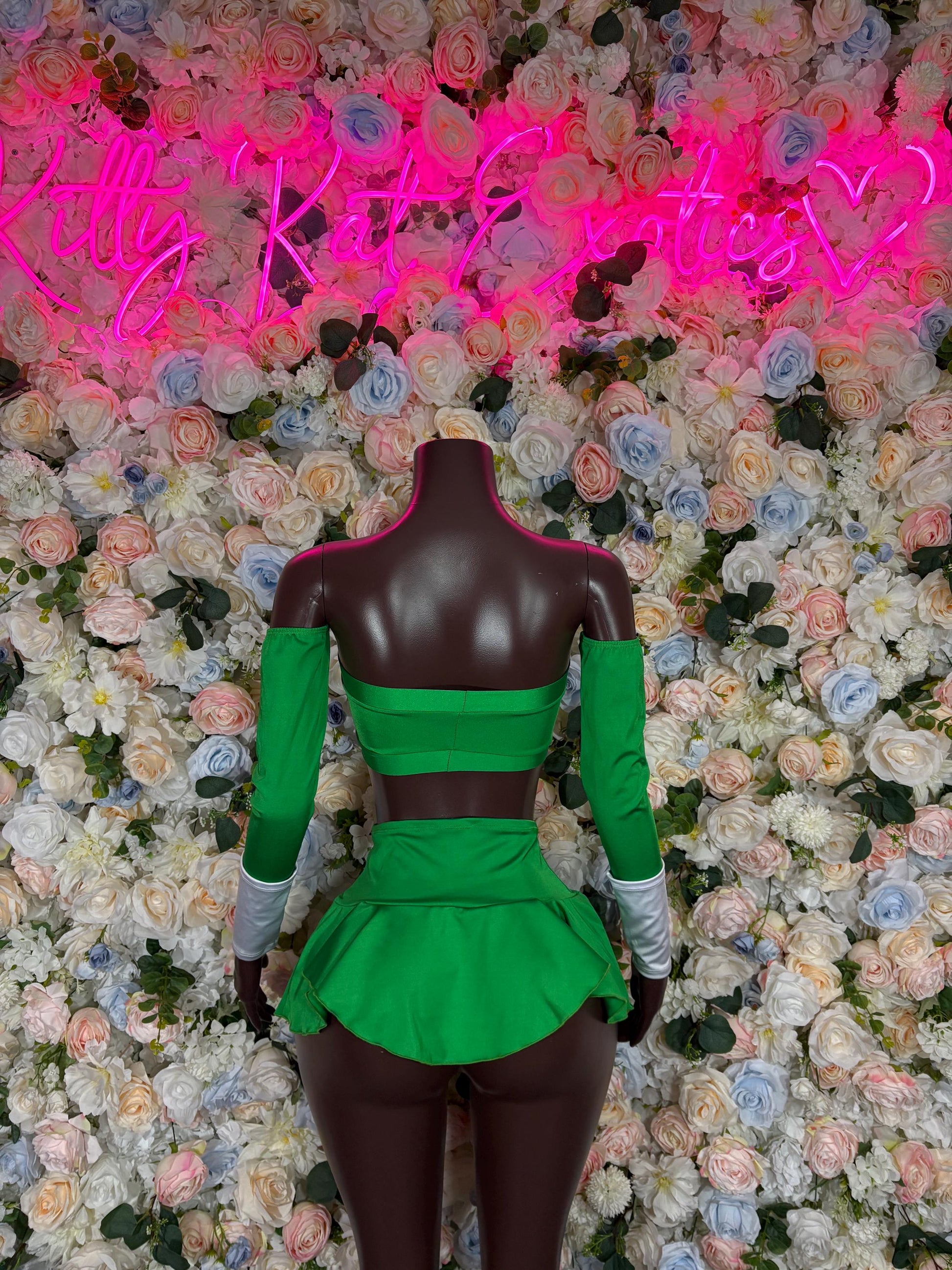 Halloween Costume Power Ranger Two Piece Green With Sleeves for Women, Bottlegirl Bartender Outfit, Cosplay