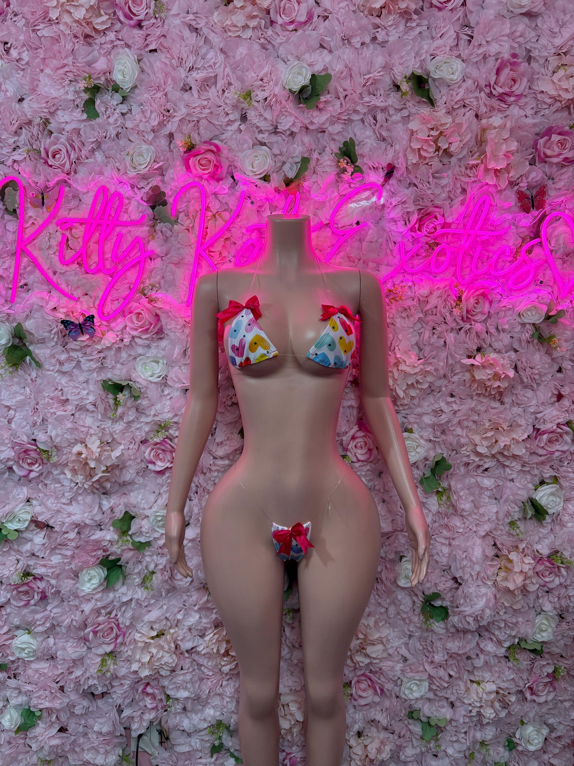 Hearts Valentines Day Exotic Dancewear Two-Piece Bikini - Sexy Hearts Romantic Outfit for Date Night - Cute Gift for Her