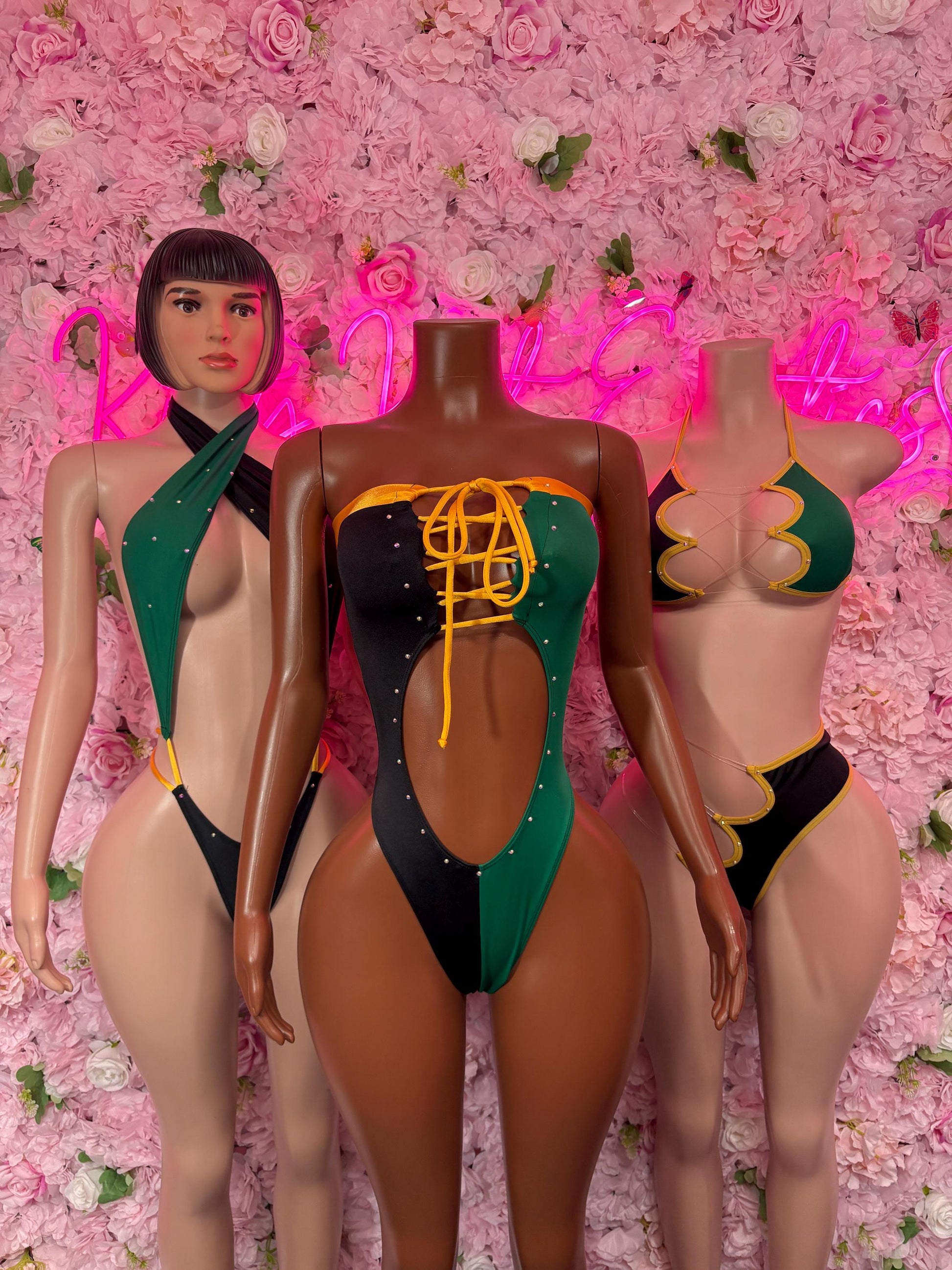 Jamaica Flag Bodysuit Set | One-Piece Swimsuit | Festival Outfit | Jamaica Bikini | Country Flag Swimwear | Beachwear | Carnival Outfit