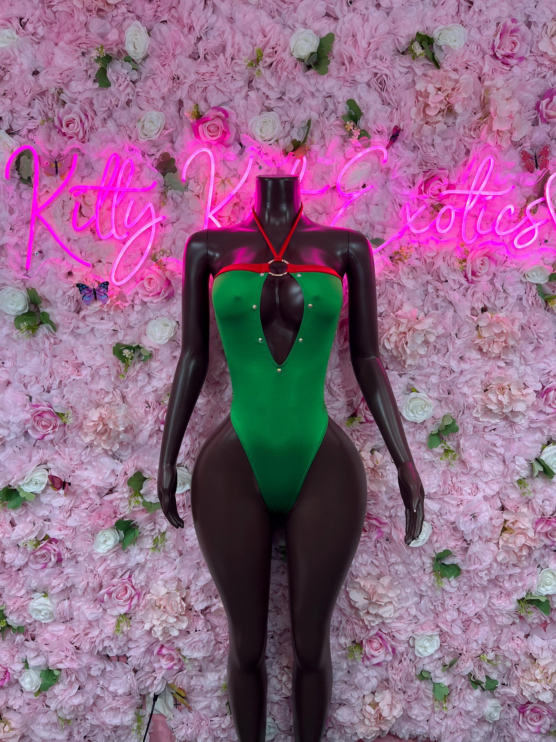 Sexy Santa Christmas Costume - One Piece Green Holiday Outfit - Festive Womens Christmas Lingerie