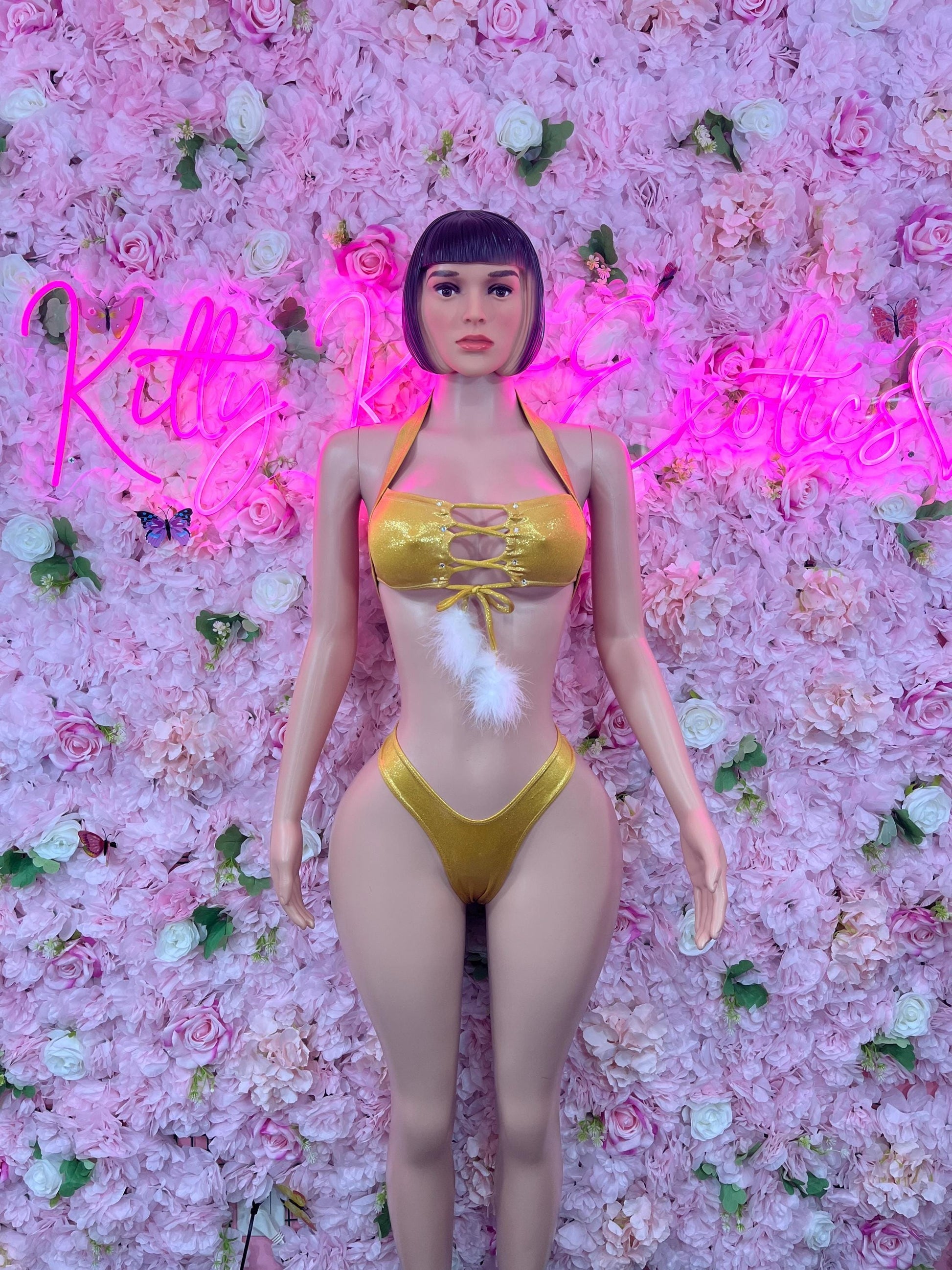 Naughty Santa Sexy Santa Christmas Costume - Two Piece Gold Holiday Outfit - Festive Womens Christmas Lingerie Christmas