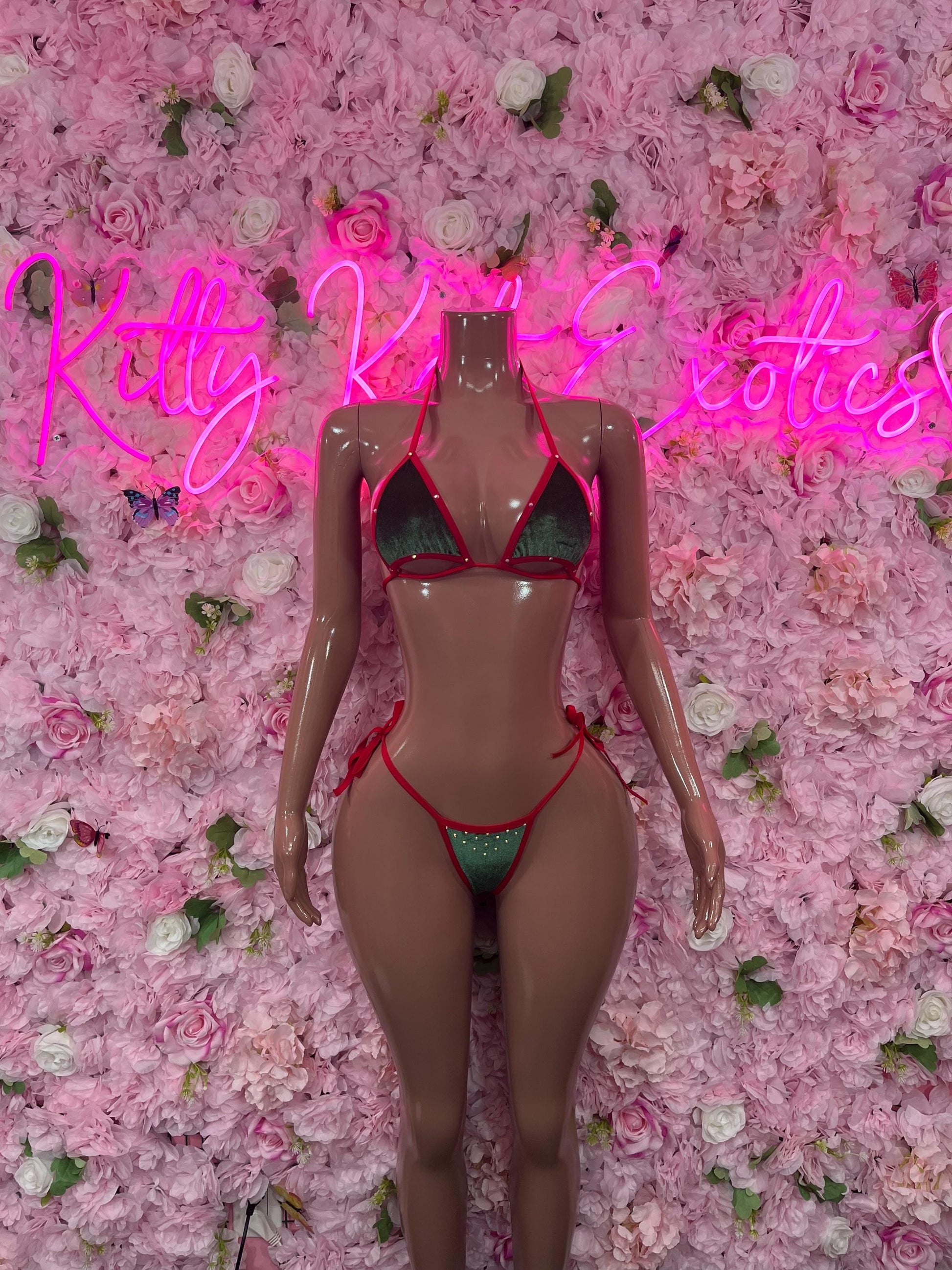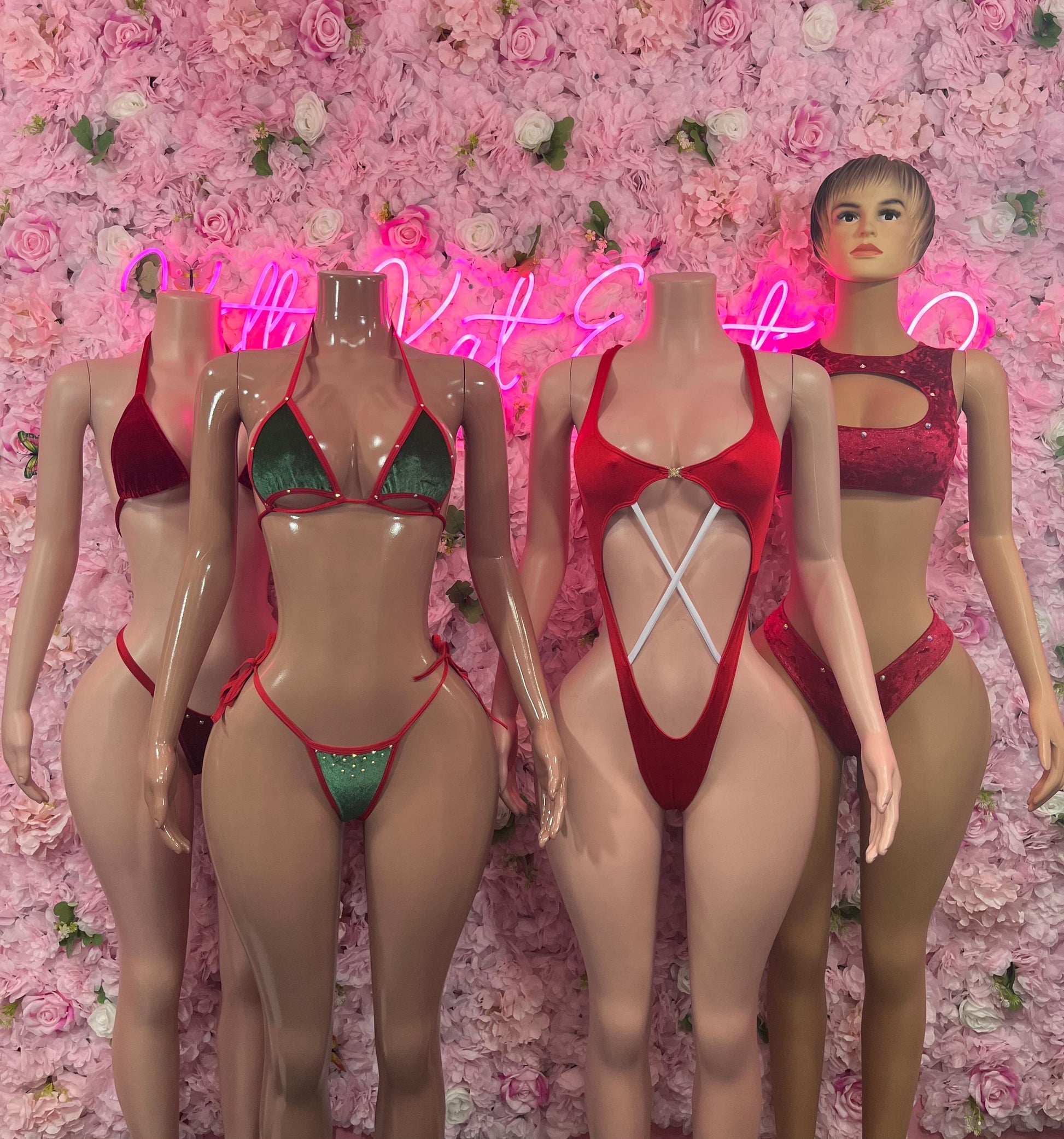 Sexy Santa Christmas Costume - Two Piece Red Bikini Holiday Outfit - Festive Womens Christmas Lingerie