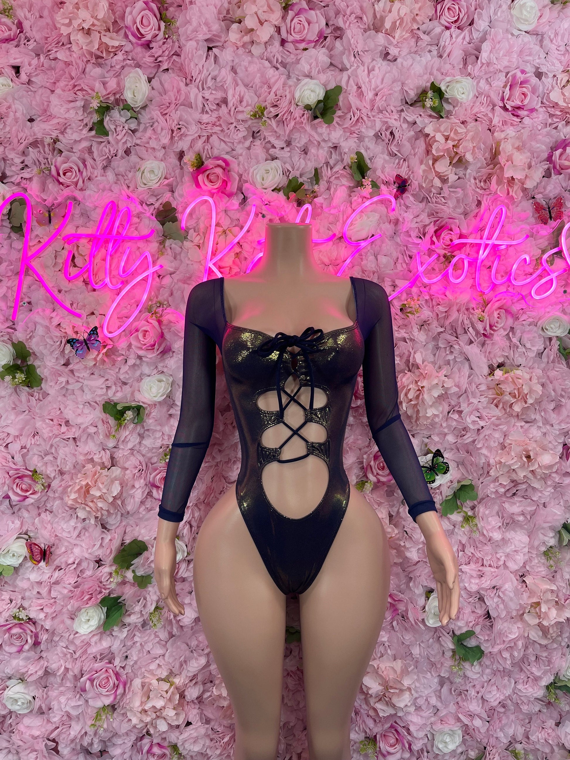 New Years Bottlegirl One Piece Blue/Gold Metallic Bodysuit Festival wear