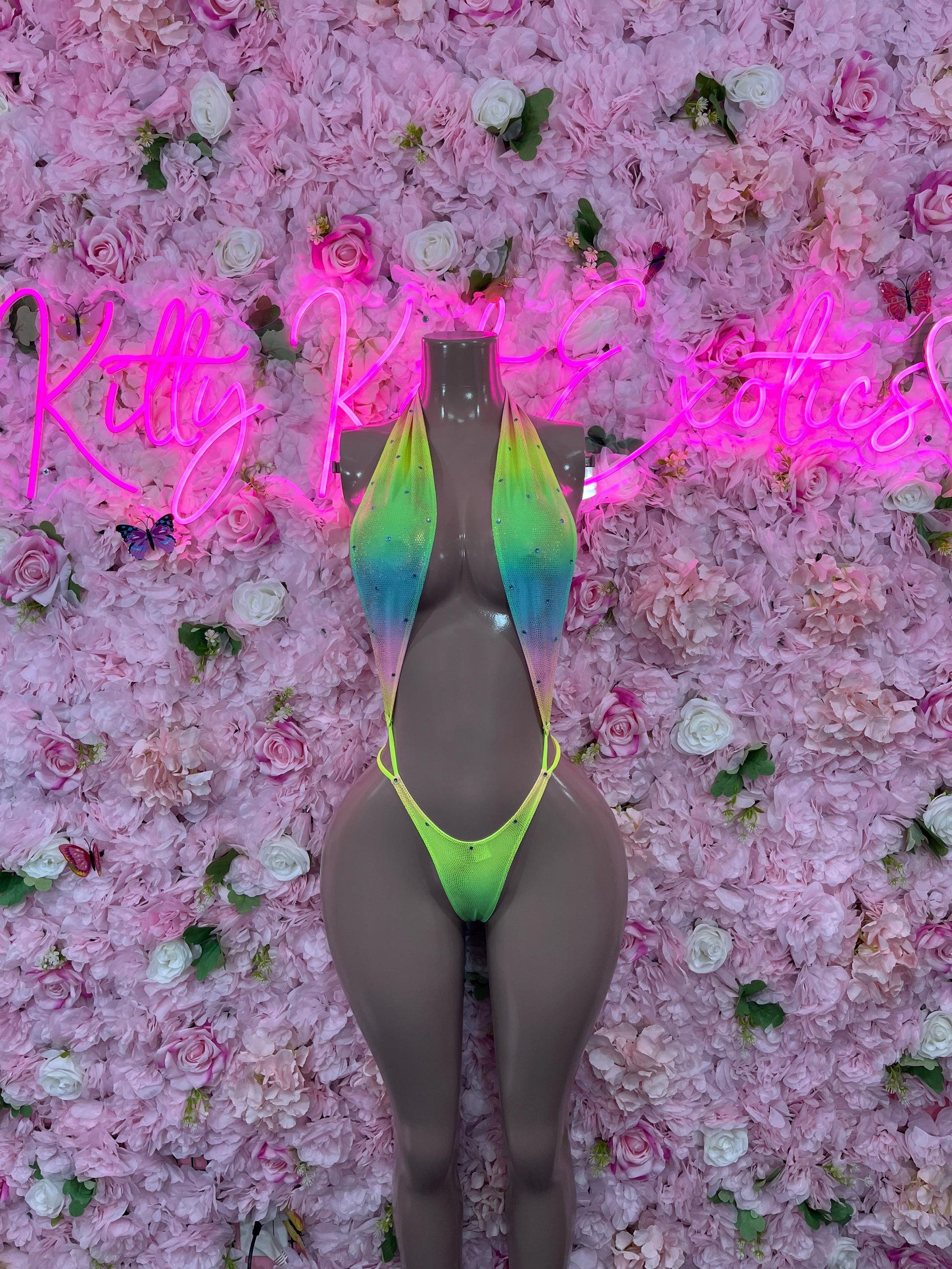 One Piece Rainbow Metallic Bikini Bottlegirl Set Dancewear Festival Wear