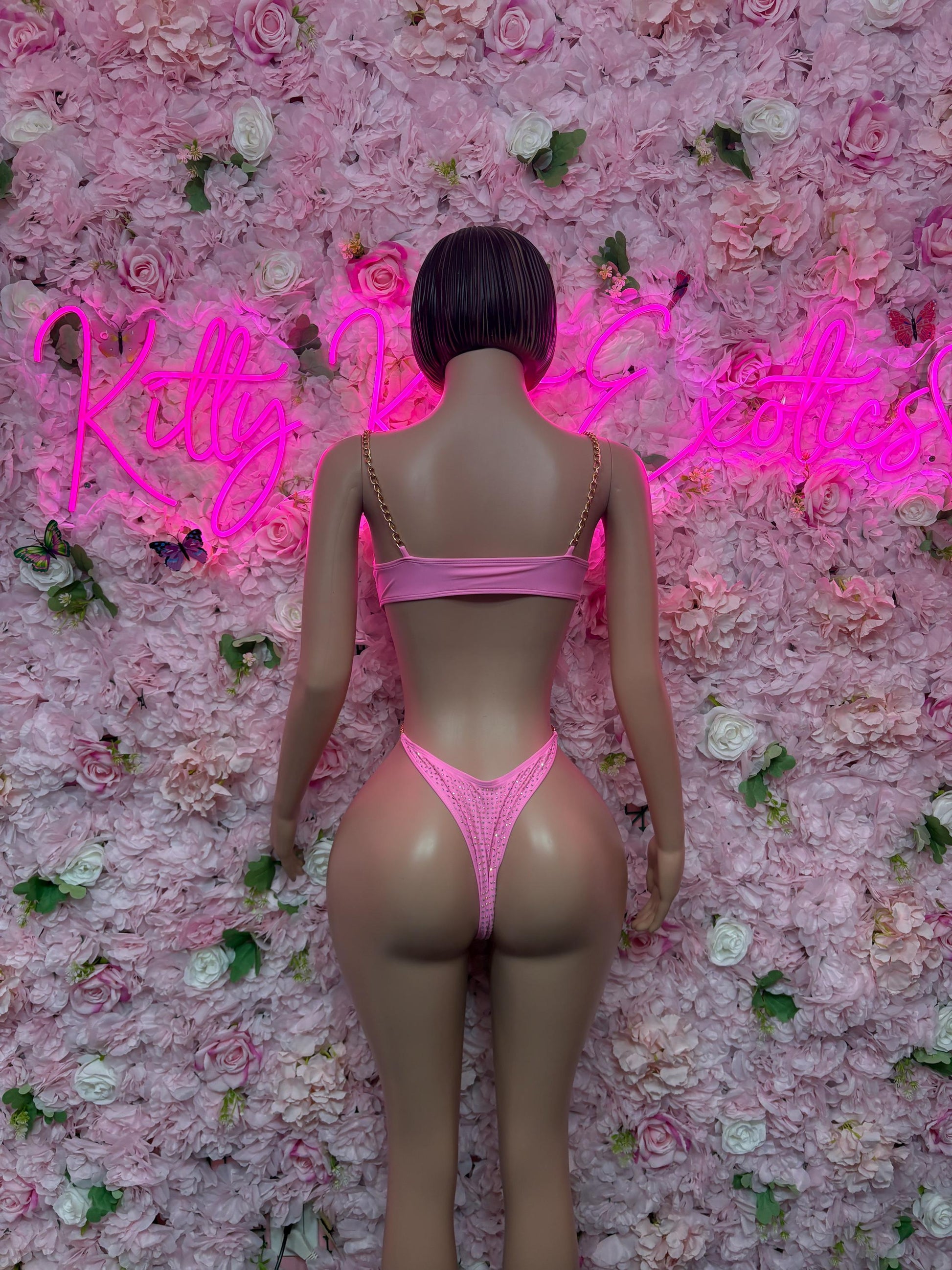 Rave Bodysuit Pink Rhinestone - Exotic Dancewear, Bartender Sexy for Performers, Events, or Special Occasions