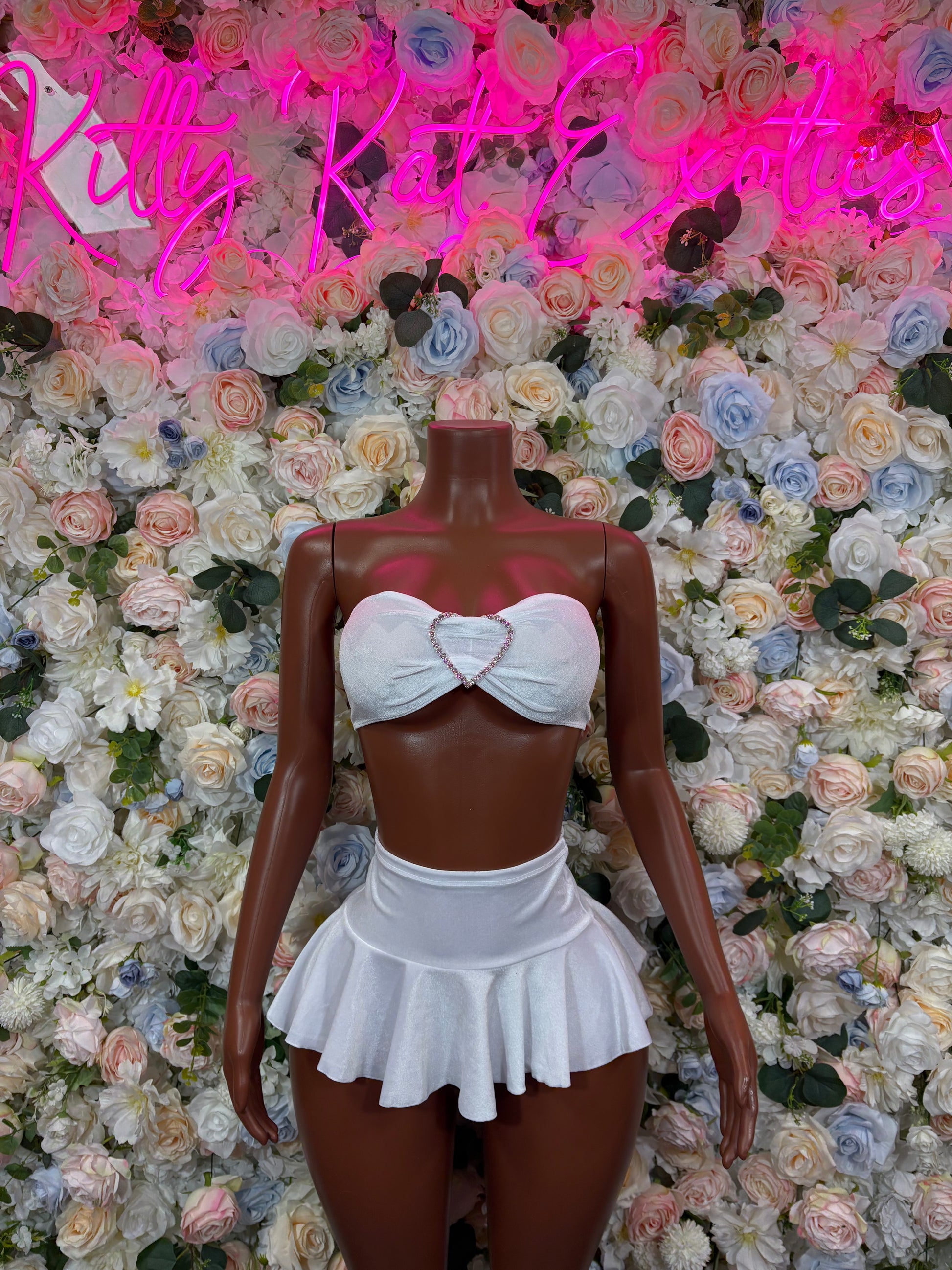 Rave Oufits Two Piece White Skirtset - Exotic Dancewear Festival Skirt Set Events Clubwear