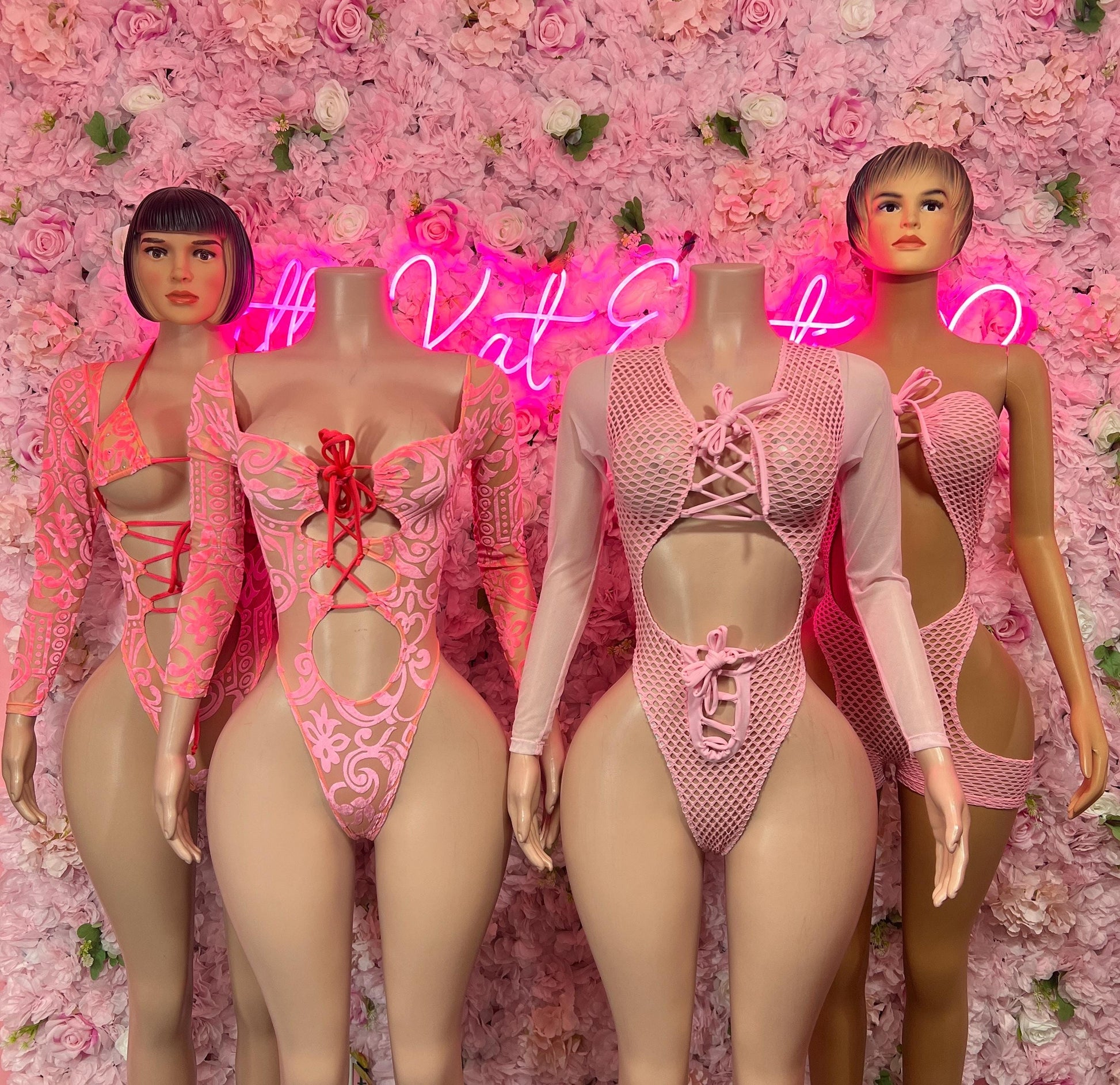 Rave Outfit - Bottlegirl One Piece Bodysuit Pink - Sexy Performance Costume, Exotic Dancewear, Bold Dance Outfit, Womens Party Outfit