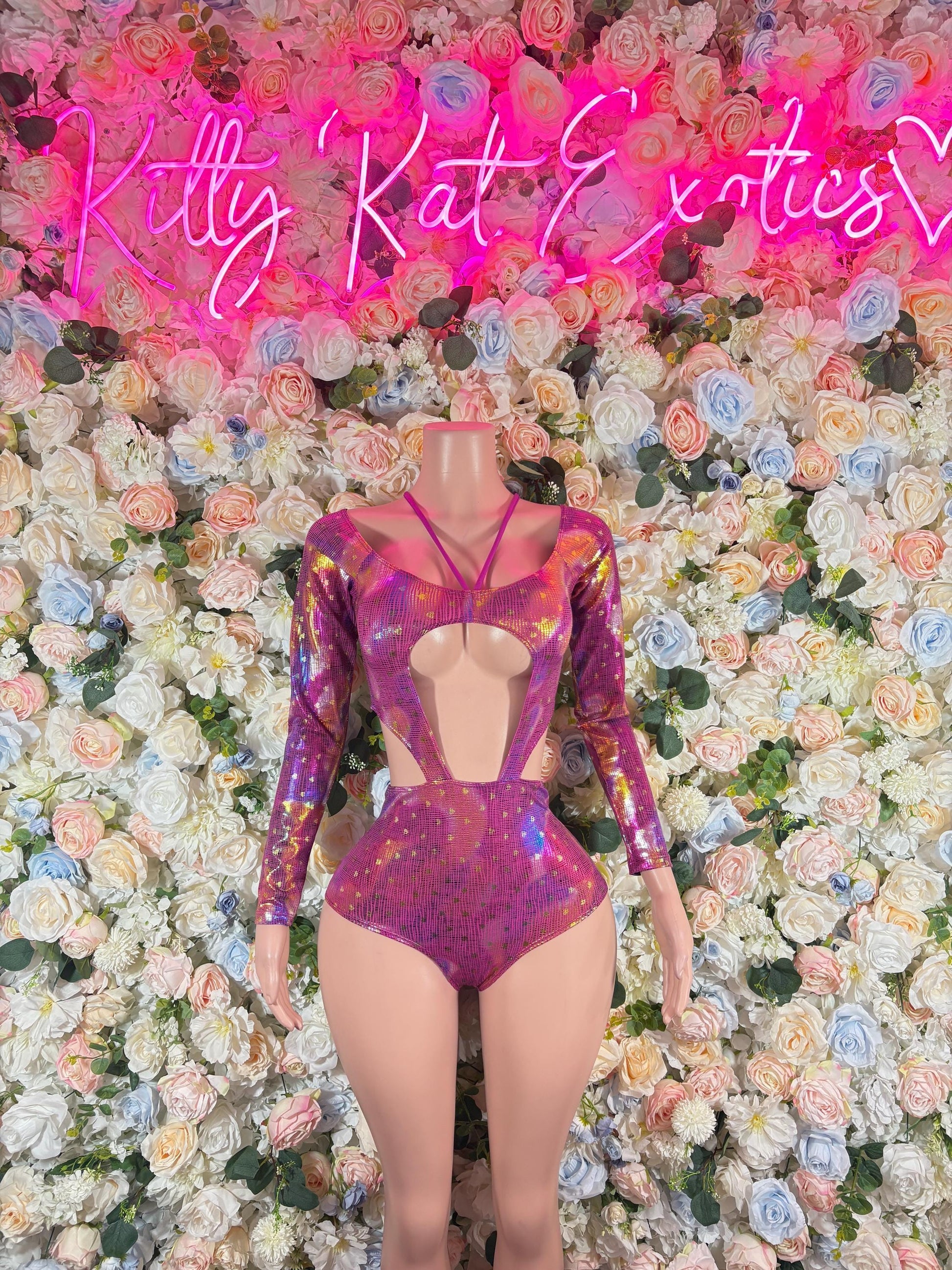 Rave Outfit Festival One Piece Bodysuit Pink - Sexy Performance Costume, Latin Sultry, Bold Dance Outfit