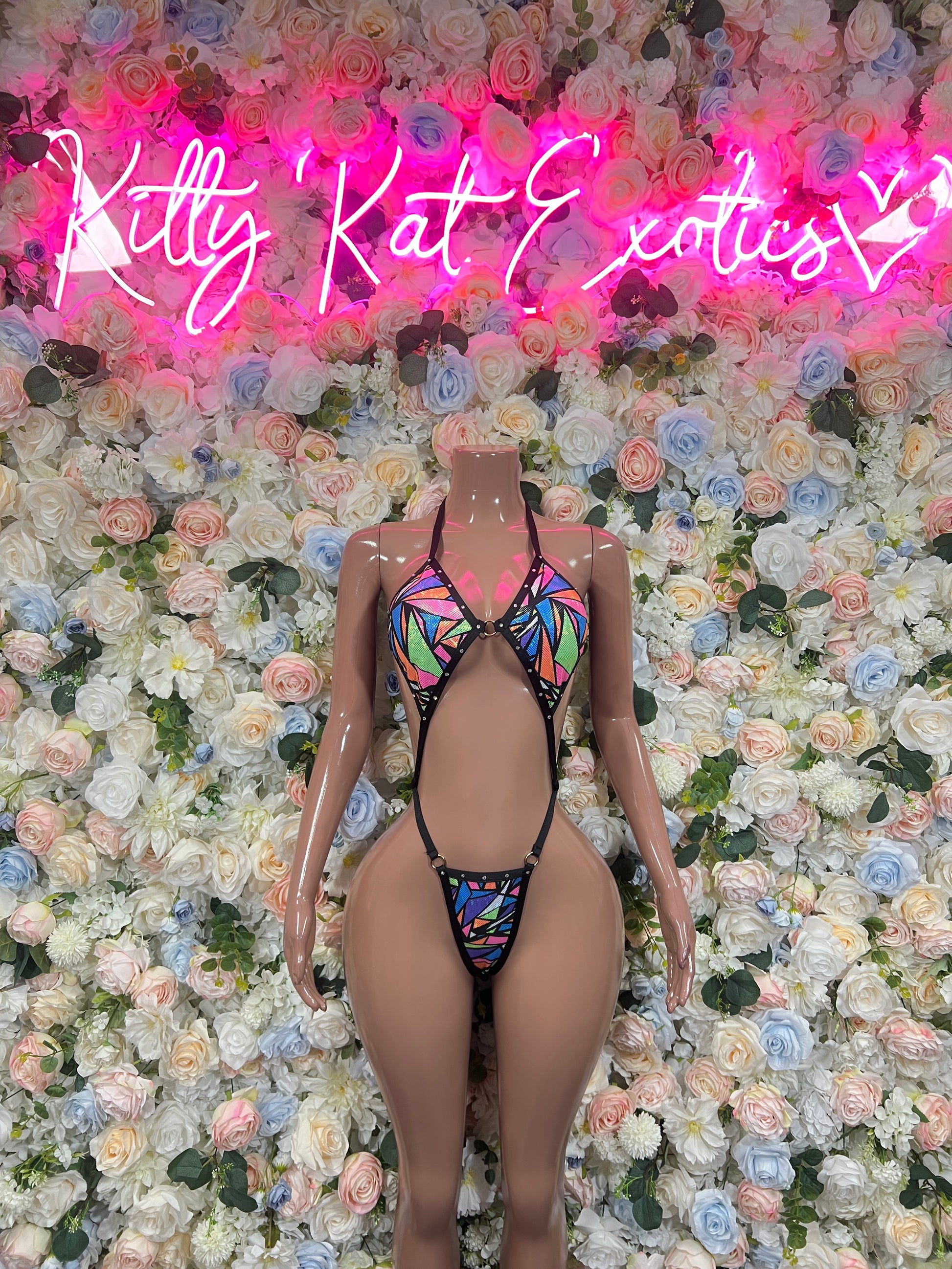 Rave Outfit Multicolor One Piece Set – Festival Costume, Exotic Dancewear