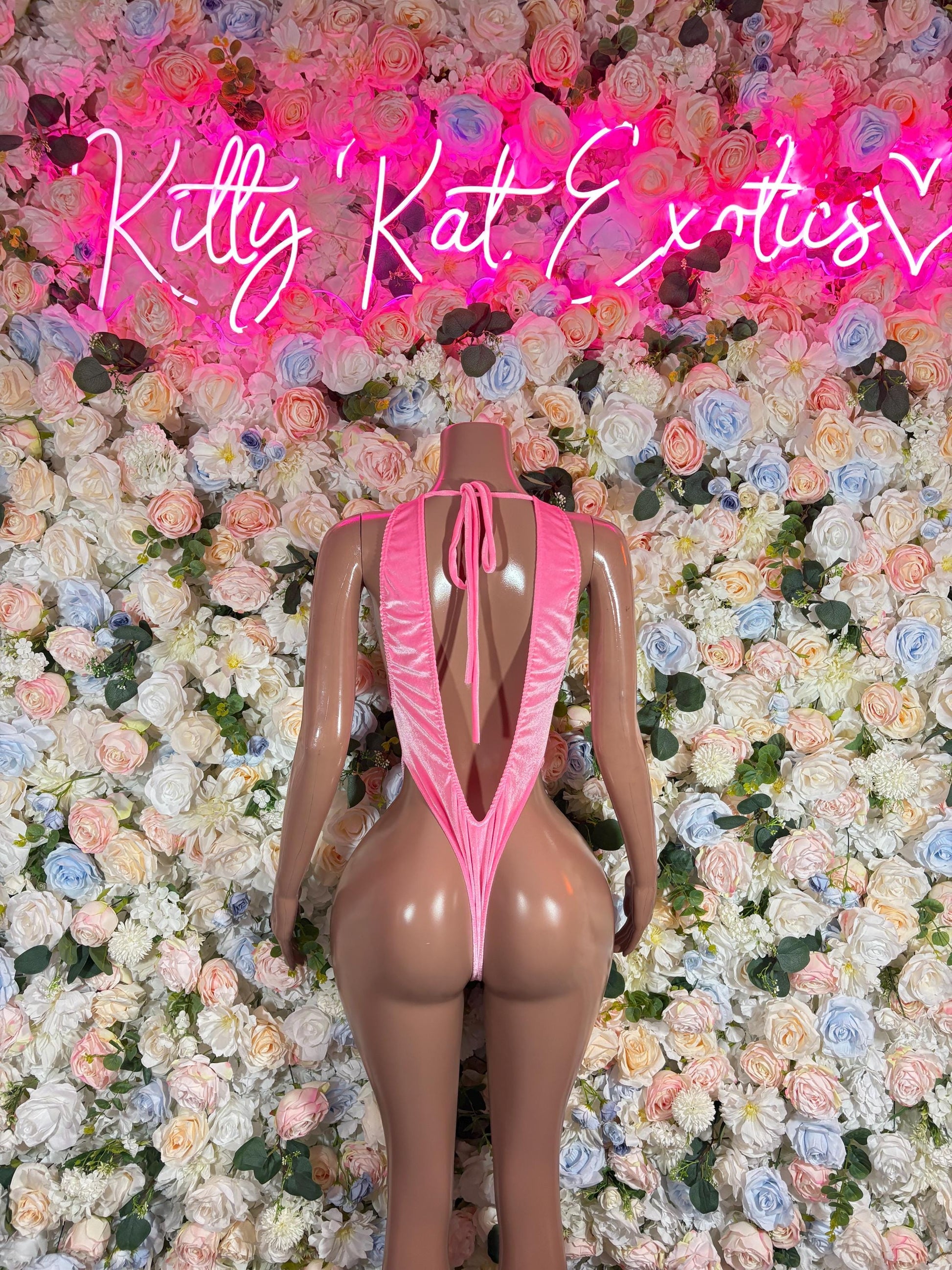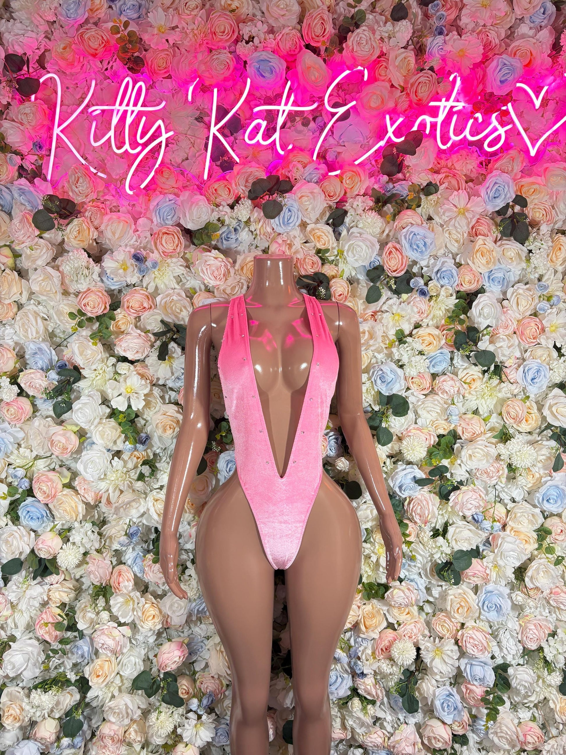 Rave Outfit One-Piece Baby Pink Velvet Festival Outfit | Exotic Dancewear Rave wear