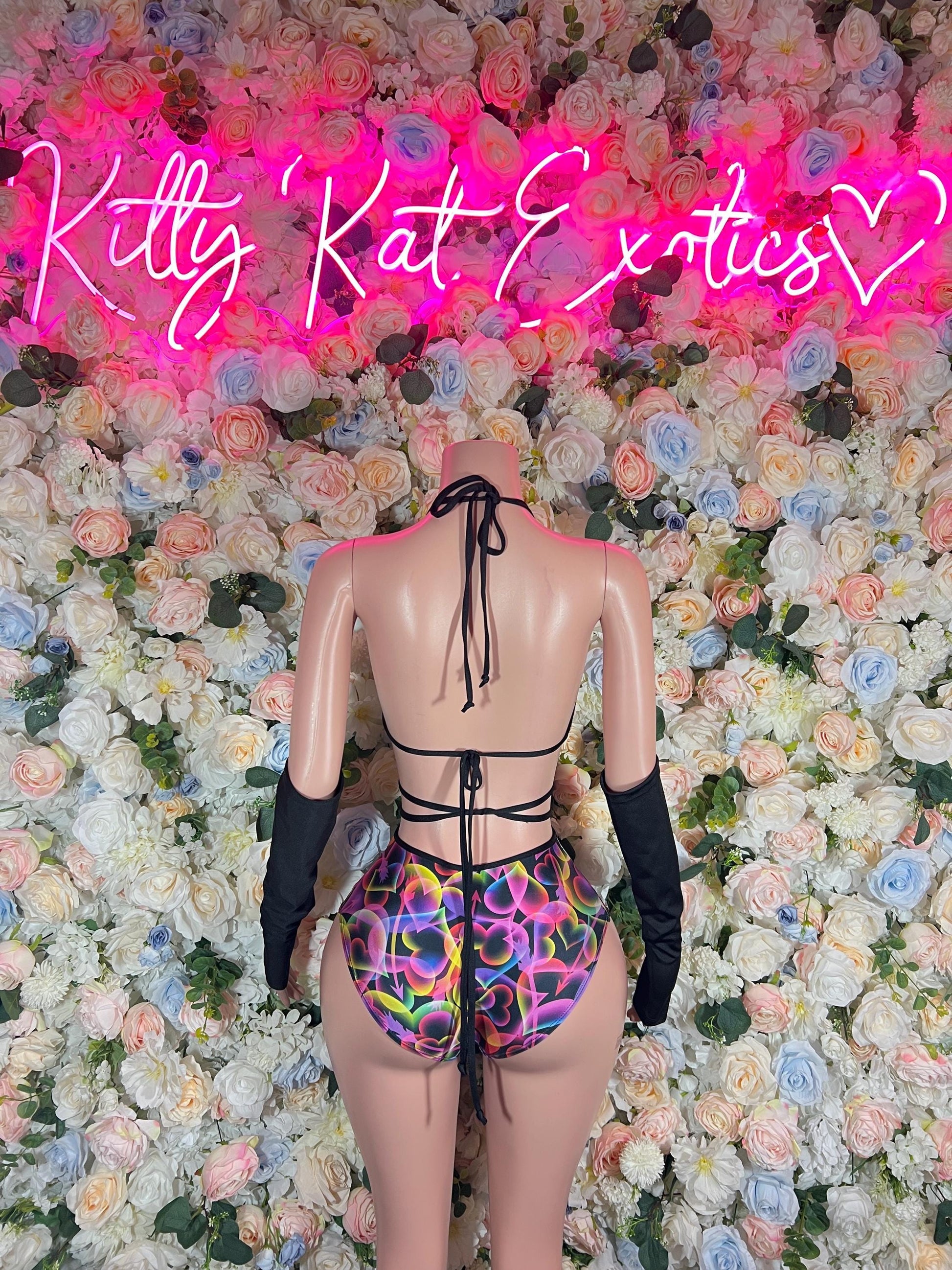 Rave Outfit One-Piece Multicolor Trippy Mushroom Bodysuit With Sleeves Festival Wear Ravewear Festive Costume