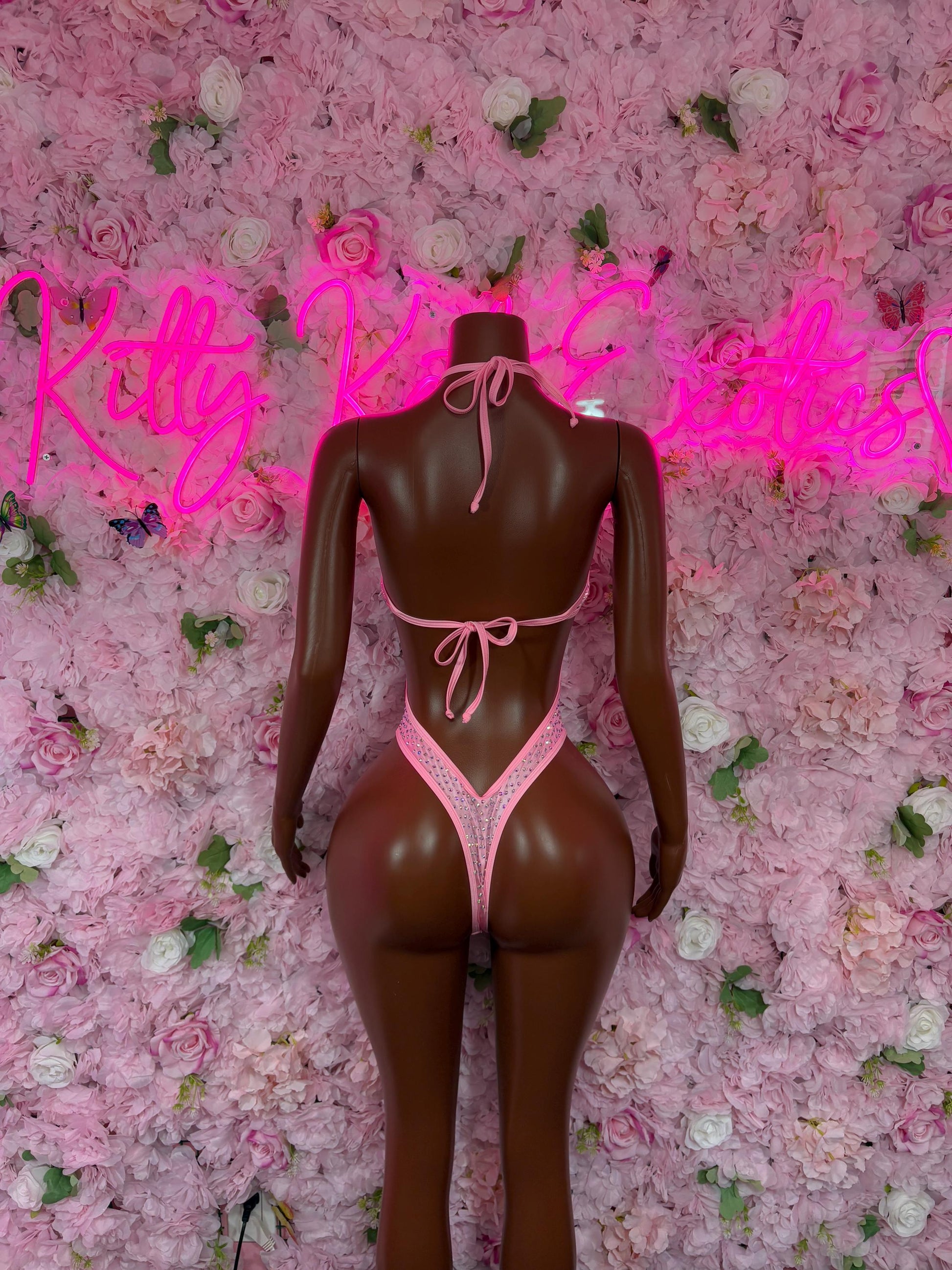 Rave Outfit One-Piece Pink Rhinestone Costume Sparkly Stripper Outfit, Go-Go Dancer Set