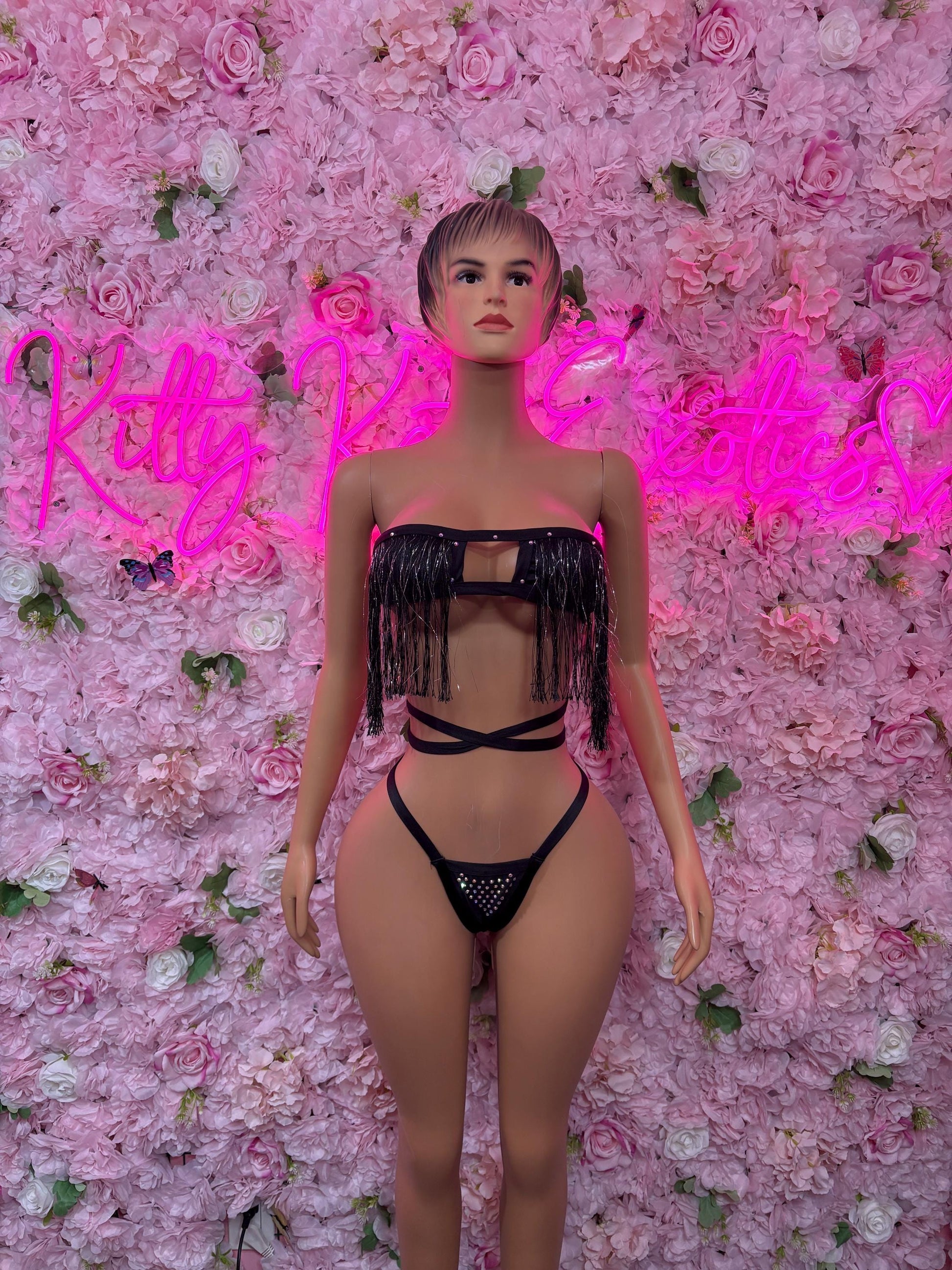 Rave Outfit Two Piece Black Fringe Dancewear Ravewear Exoticwear