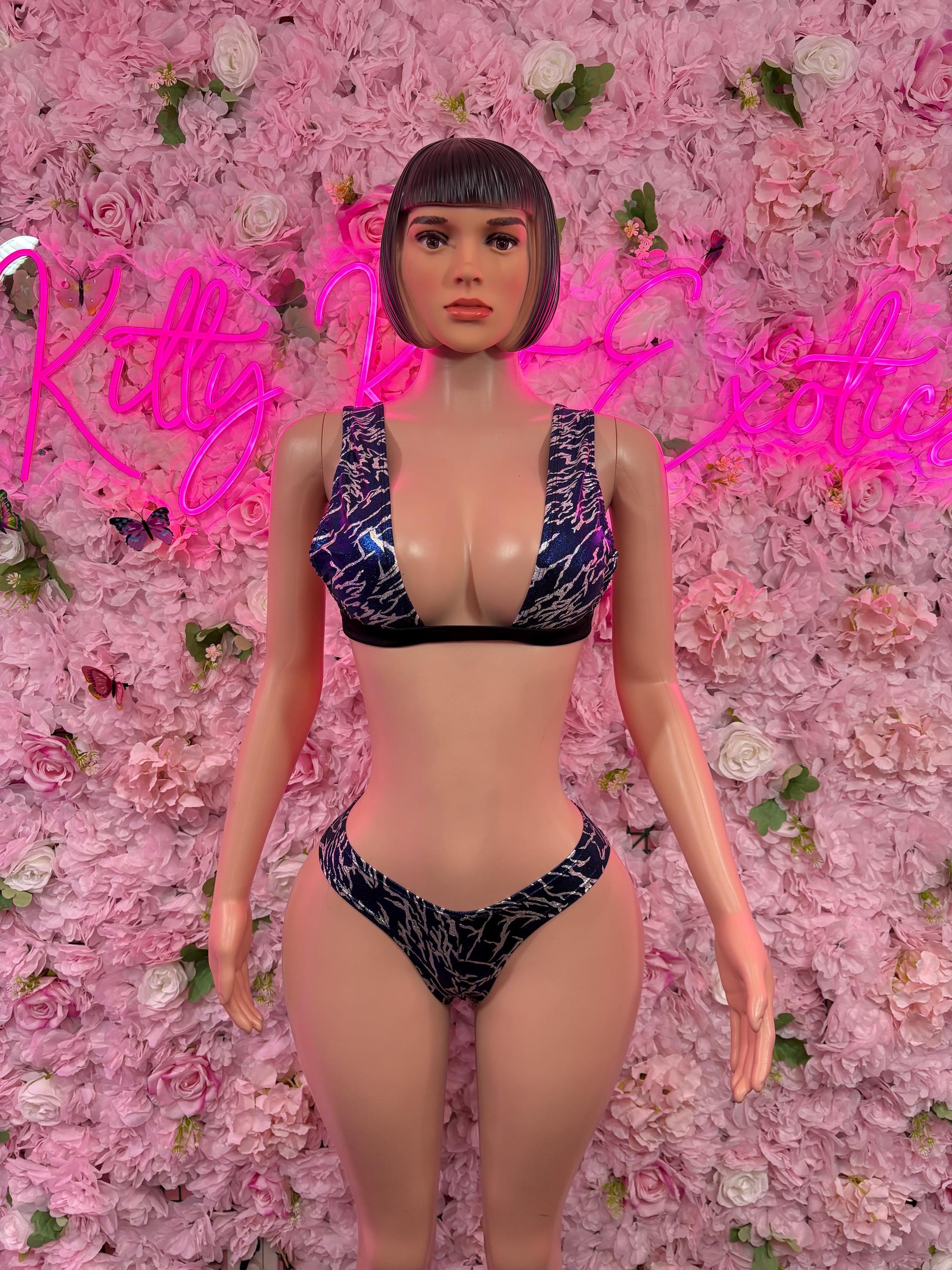 Rave Outfit Two Piece Navy Blue Metallic Bikini Party, or Rave Wear | Bold and Stylish Women's Fashion