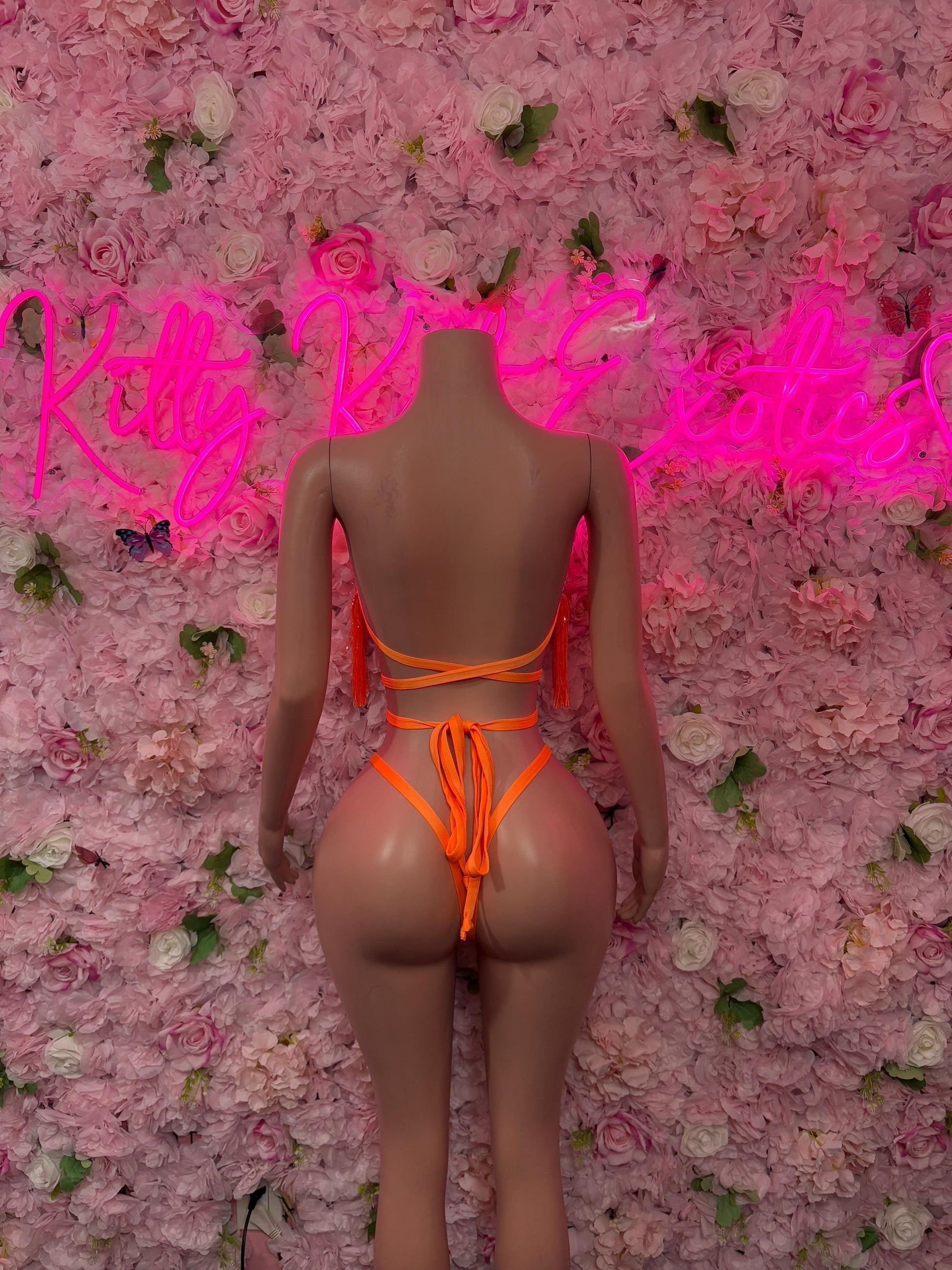 Rave Outfit Two Piece Orange Fringe Dancewear Ravewear Exoticwear
