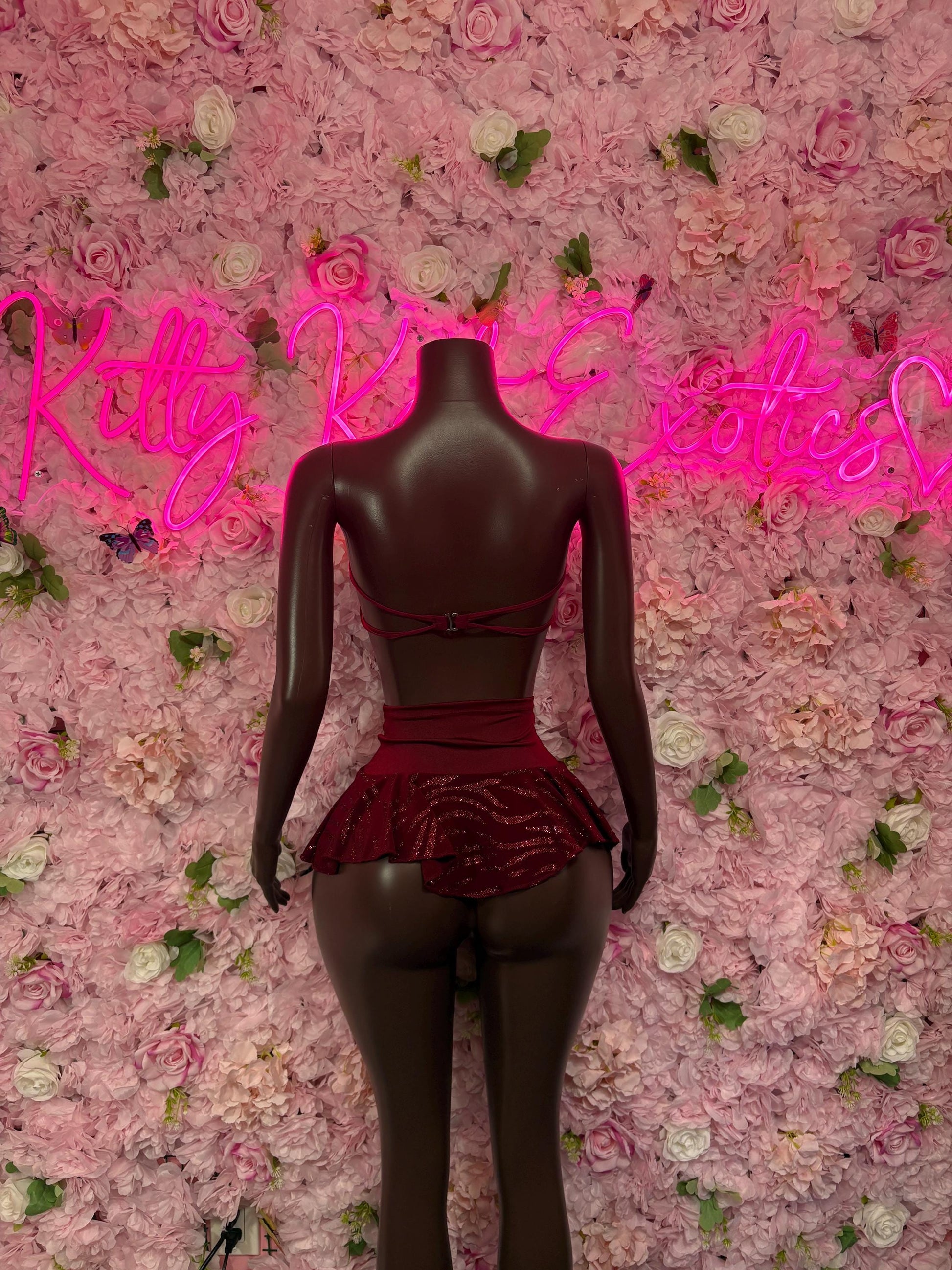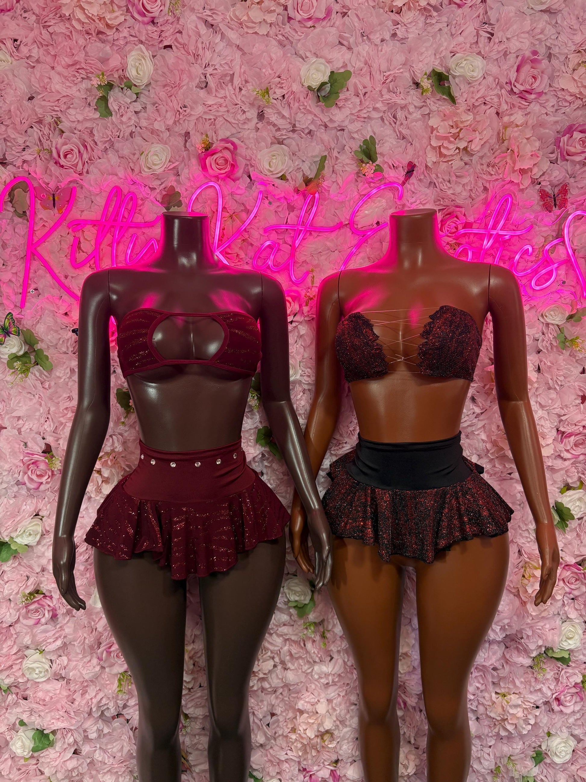 Rave Outfit - Two Piece Skirt Set Burgundy - Ravewear - Sexy Festival Outfit, Clubwear, Performance Costume, EDM Party Rave Outfit