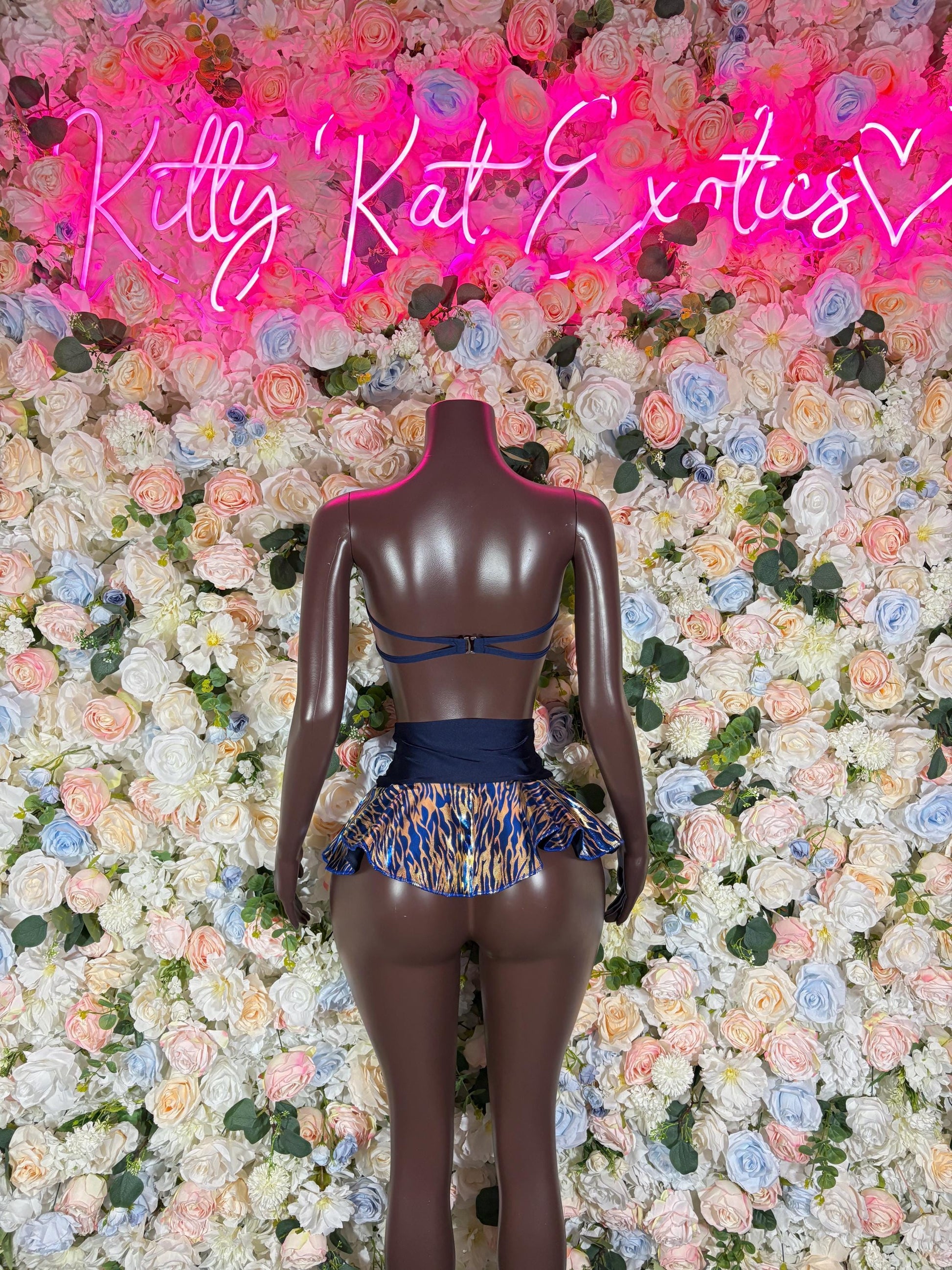 Rave Outfit - Two Piece Skirt Set Navy Gold Tiger Print - Ravewear - Sexy Festival Outfit, Clubwear, Performance Costume, EDM Party Wear