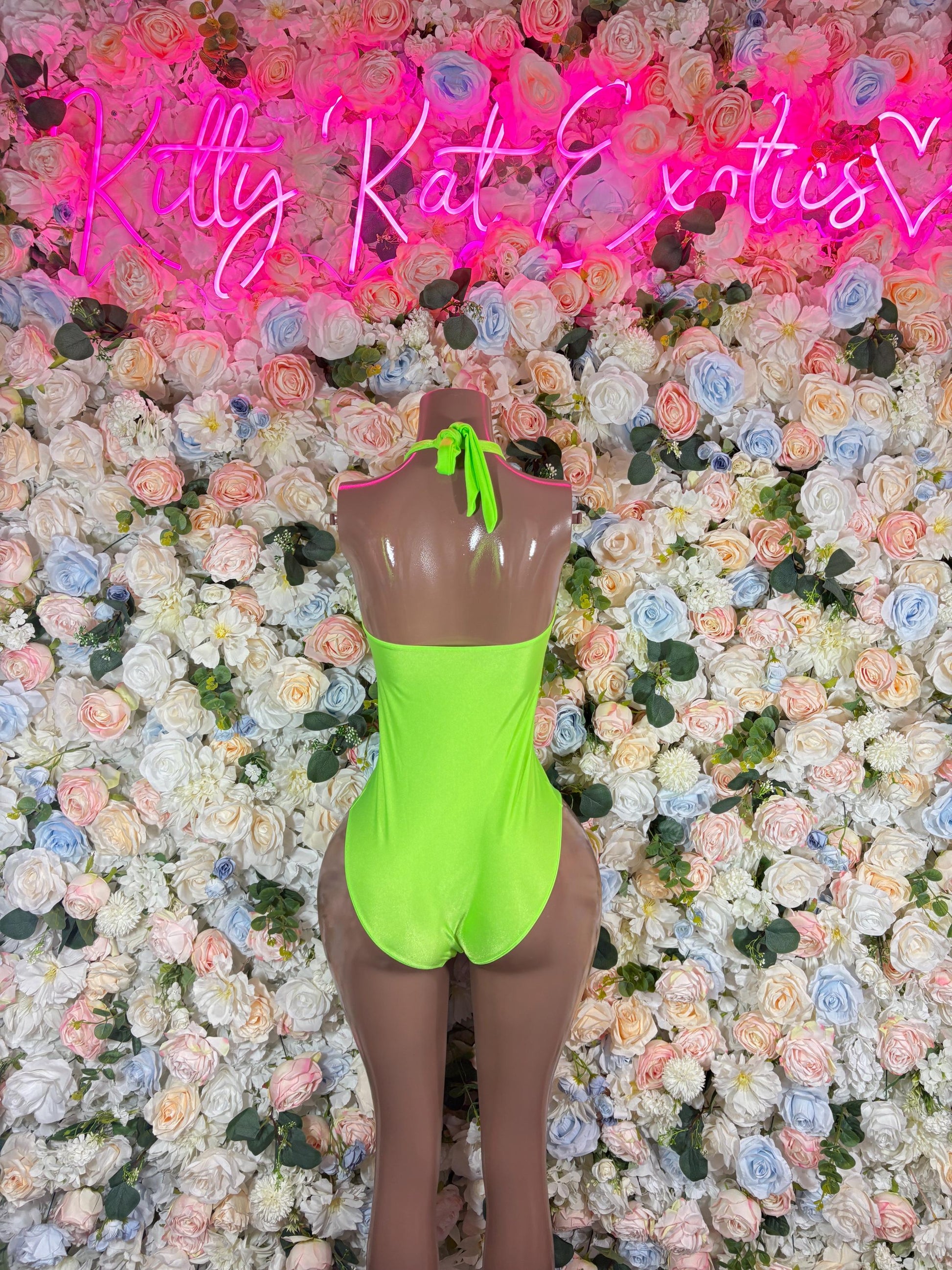 Rave wear Festival wear One Piece Bodysuit Neon Green - Sexy Performance Costume, Latin Sultry, Bold Dance Outfit