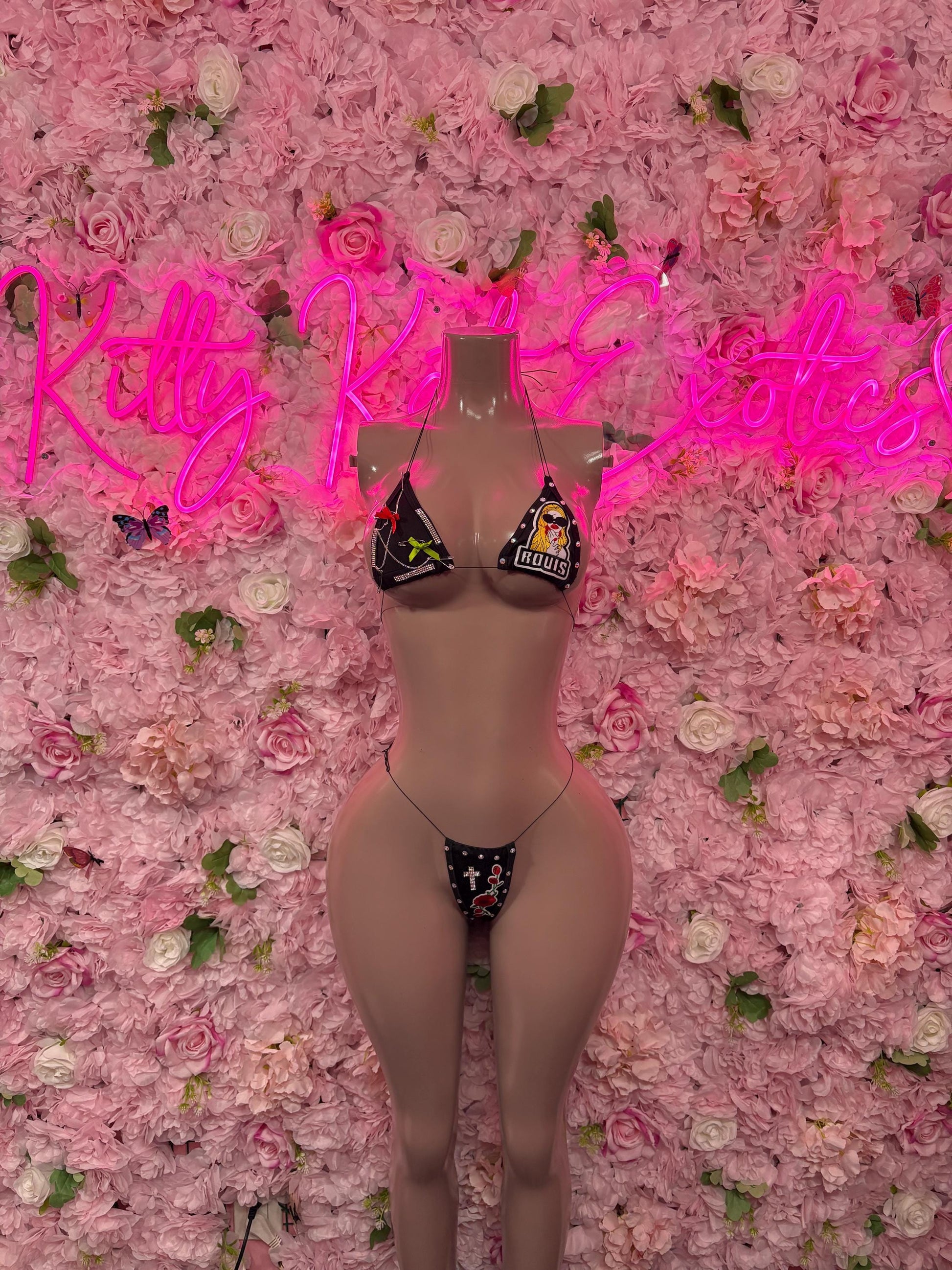 Rave Wear Two-Piece Black Custom Bikini Cute Swimsuit Set for Beach, Pool, or Vacation | Exotic Dancewear Festival wear
