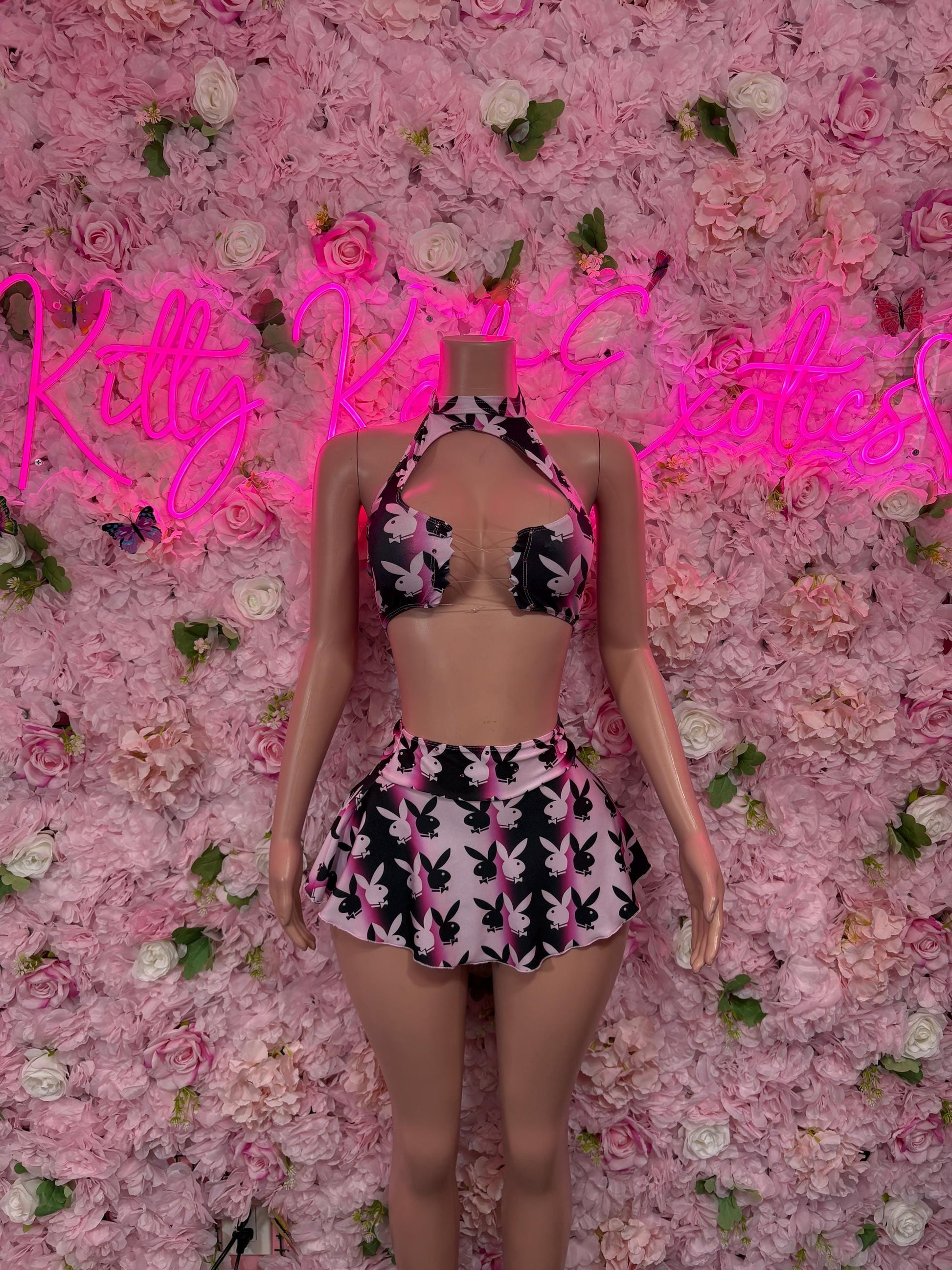 Rave Wear Two Piece Bunny Skirt Set, Rave Outfit for Performers, Raves, or Night Out | Bottle girl Outfits
