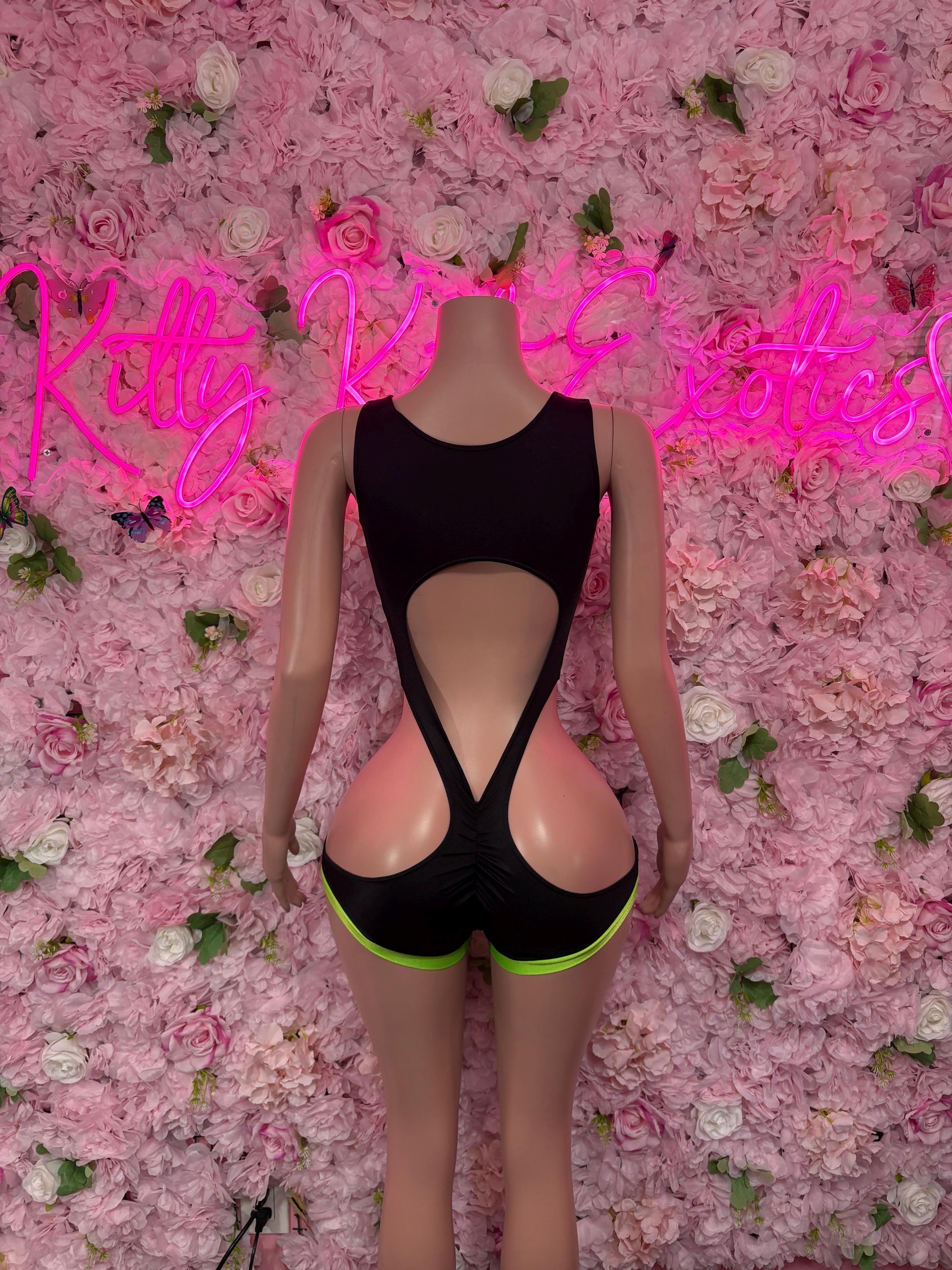 Ravewear Bodysuit One-Piece Green and Black Exotic Dancewear, Ravewear for Performers, Raves, or Night Out | Bottle girl Outfits