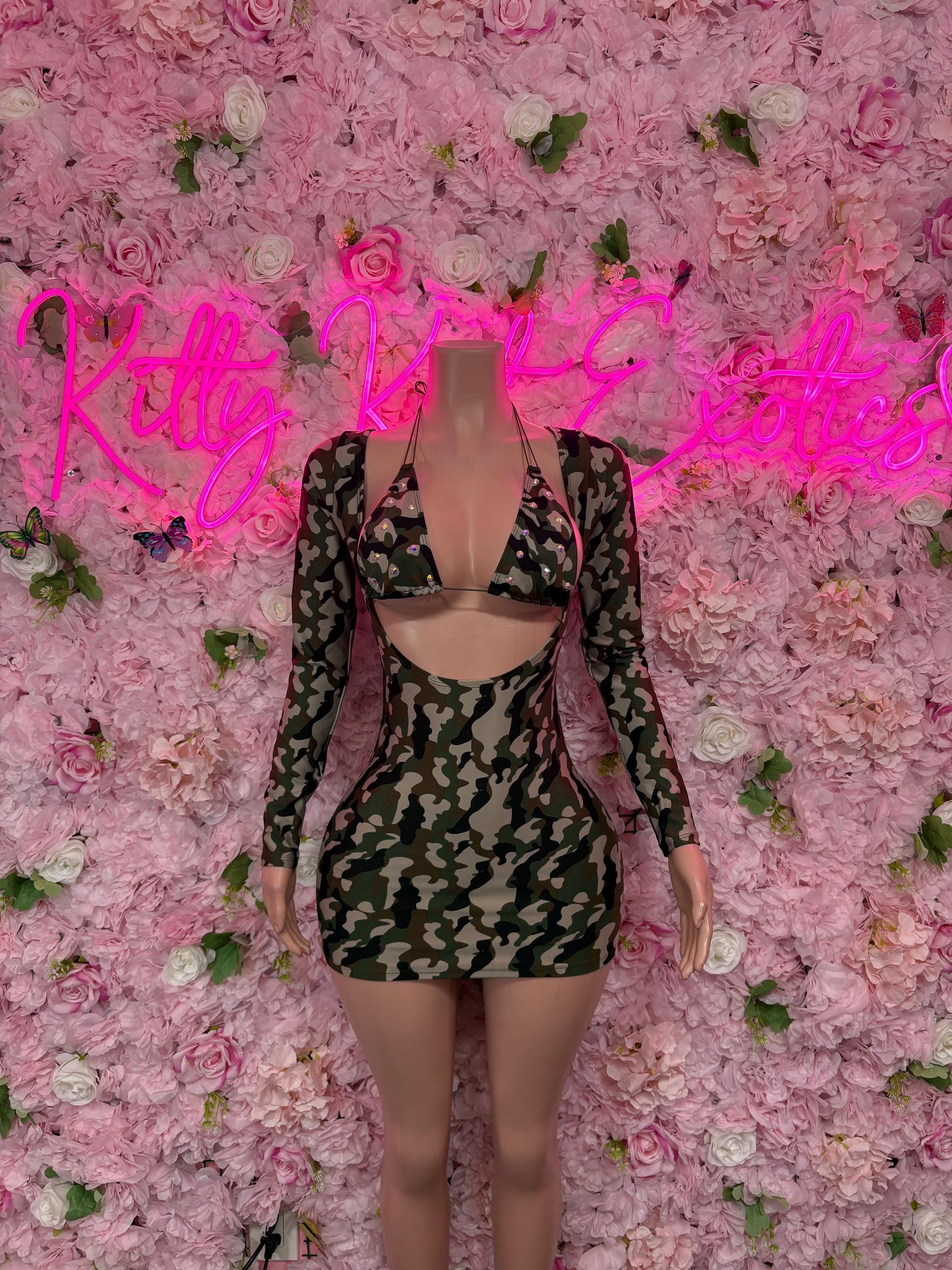 Ravewear Camo Exotic Dancewear Dress - Sexy Dance Costume, Sultry Clubwear Gown, Bold Performance Outfit, Party Dress
