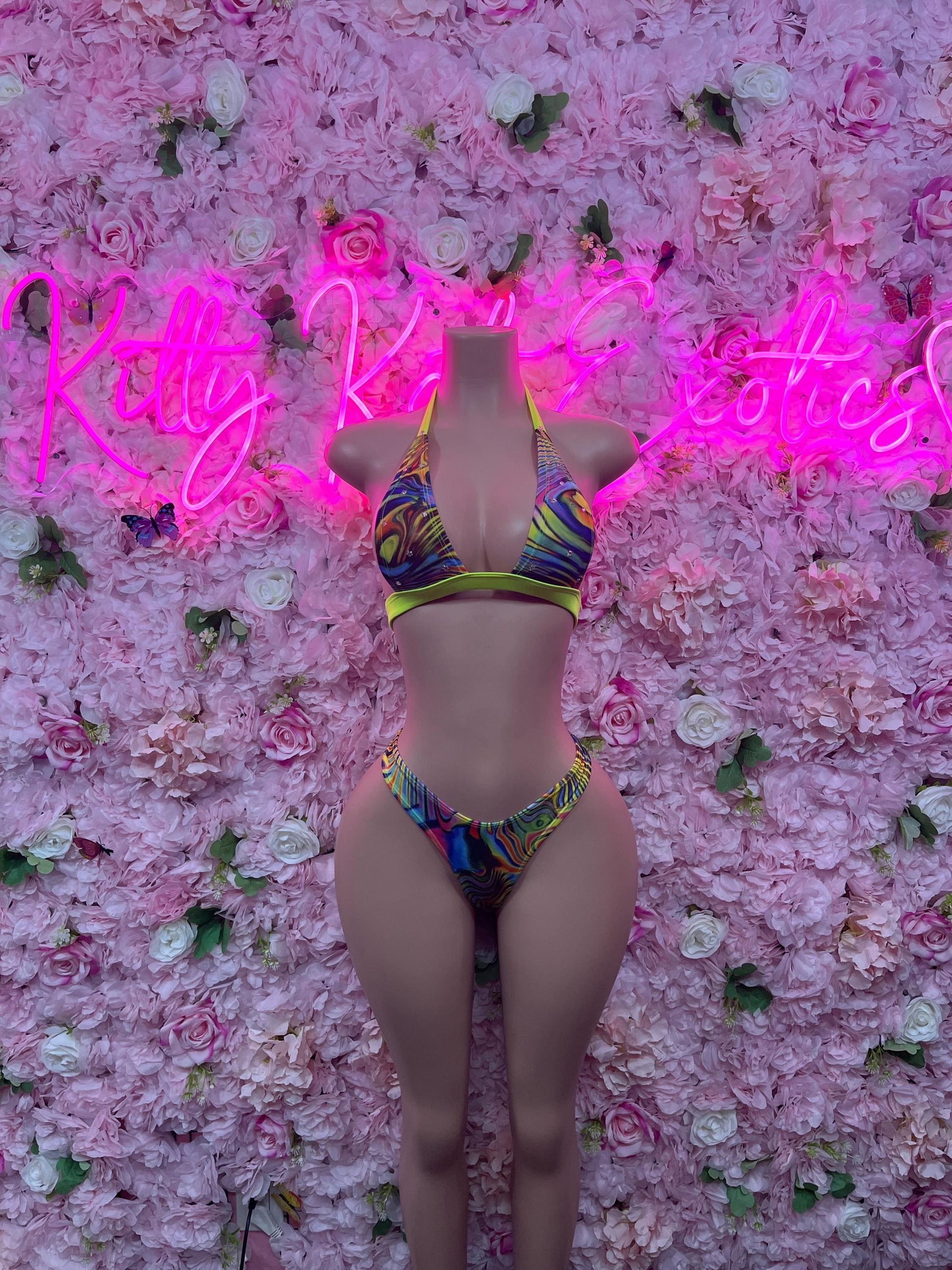 Ravewear Two Green Multicolor Bikini Exotic Dancewear for Performers, Raves, or Night Out | Sexy and Flattering Style