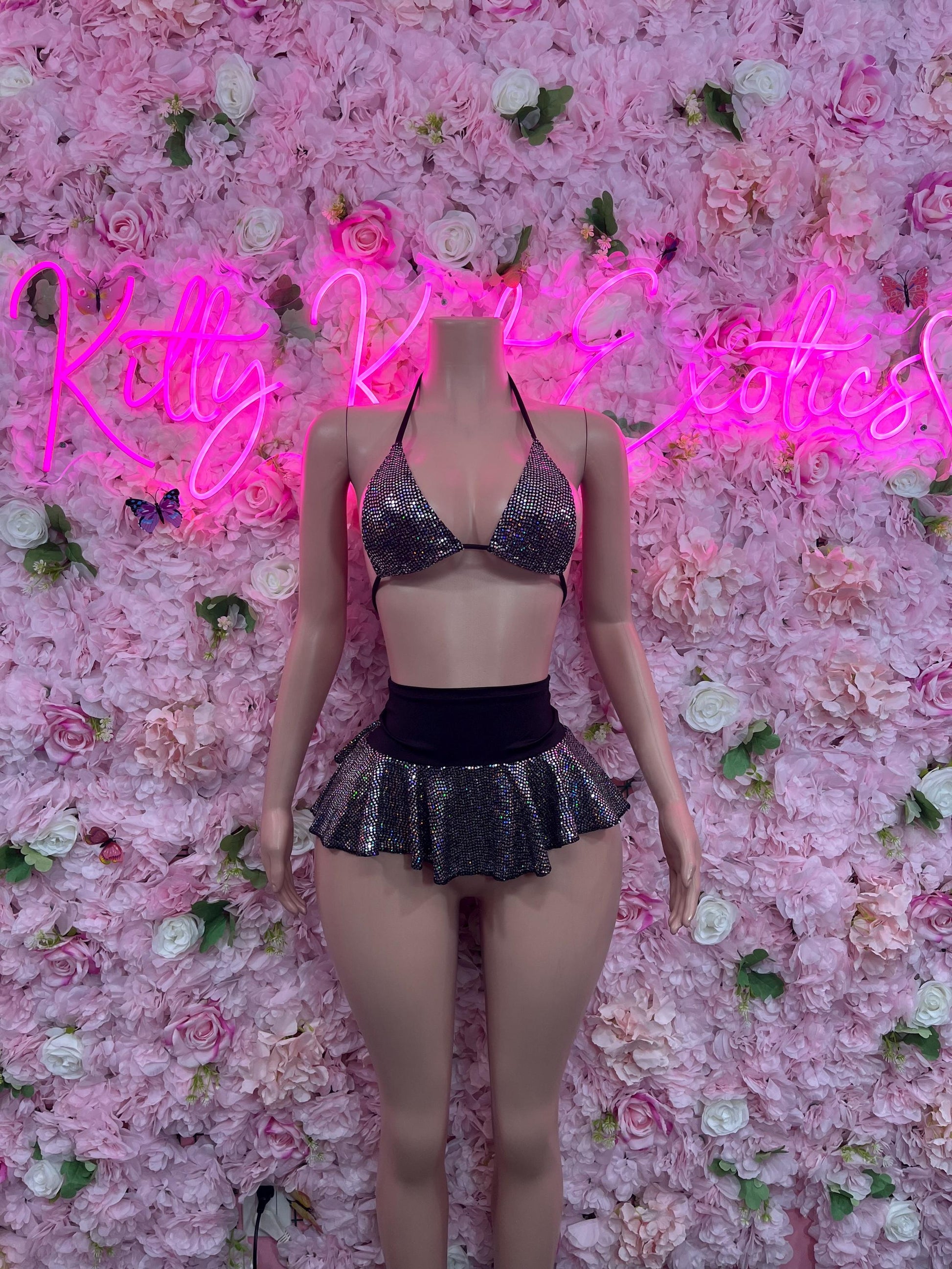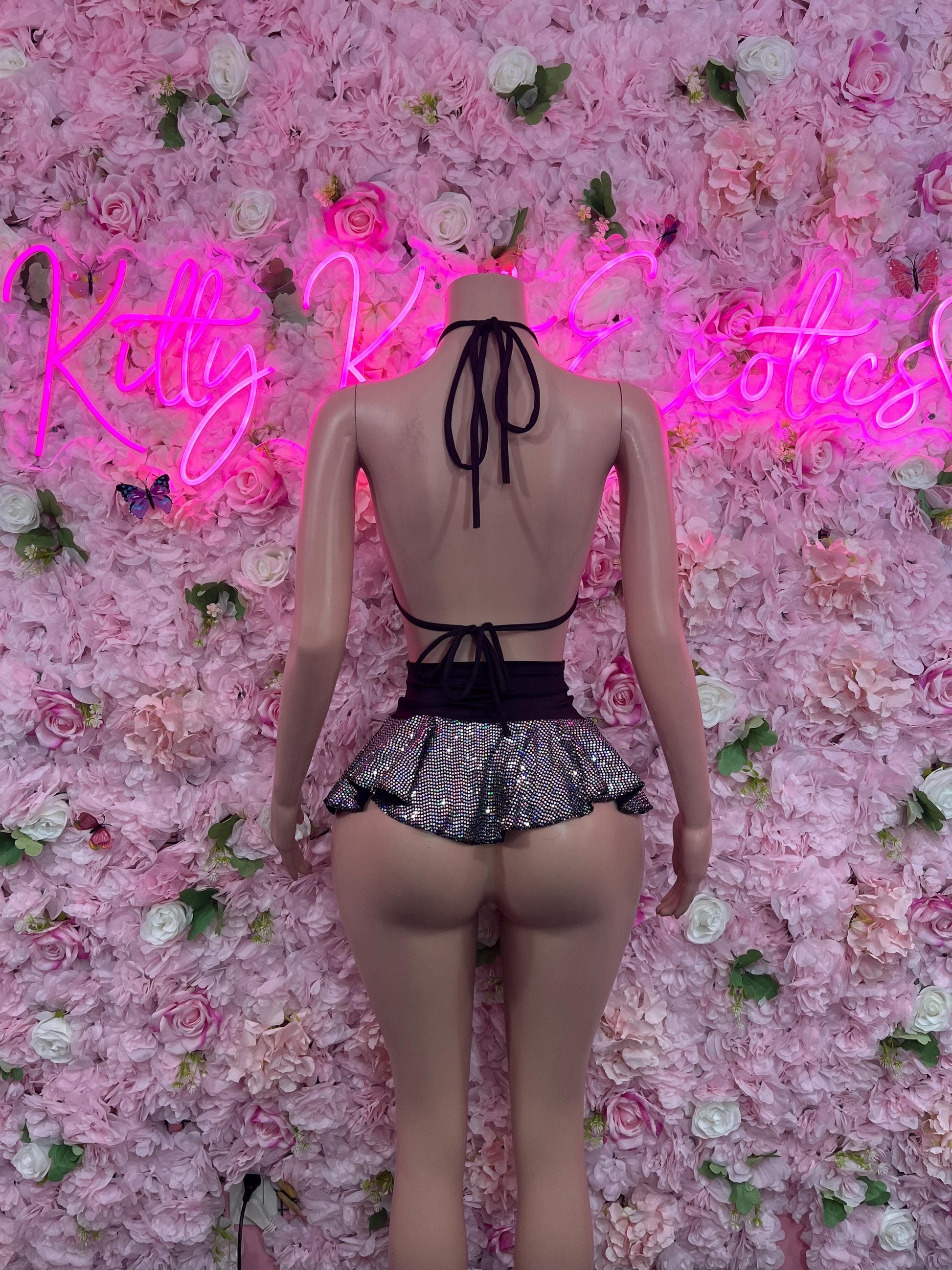 Ravewear Two-Piece Metallic Skirt Set Bodysuit Exotic Dancewear for Performers, Raves, or Night Out | Bottle girl Outfits