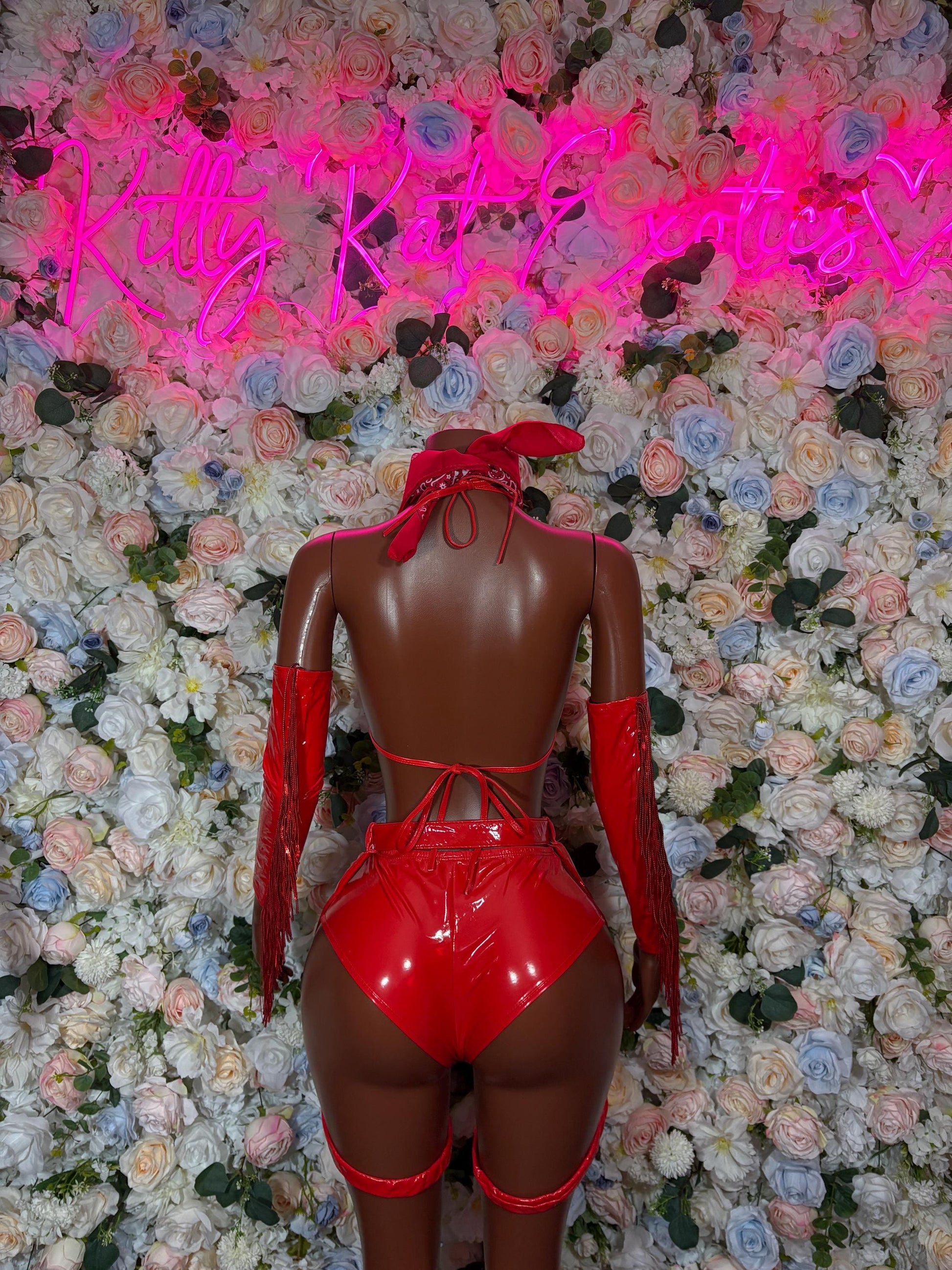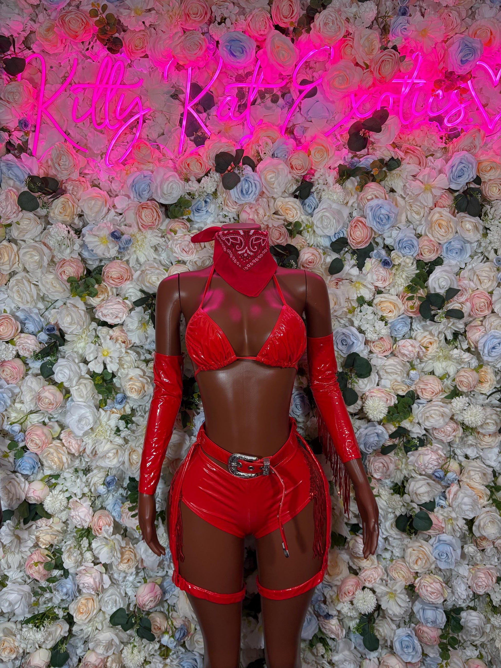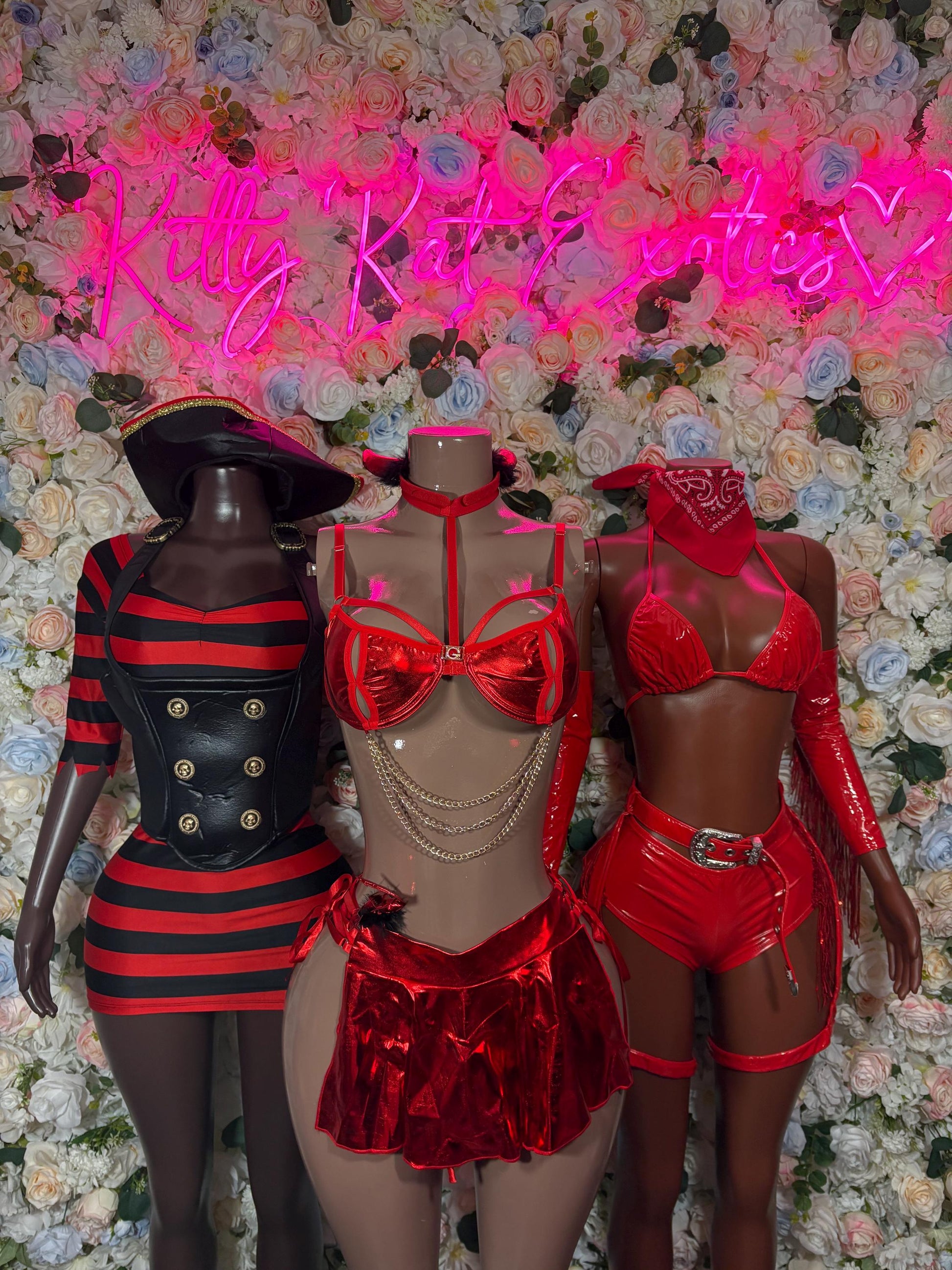 Red Biker Chick Halloween Costume: Bartender Cosplay Outfit