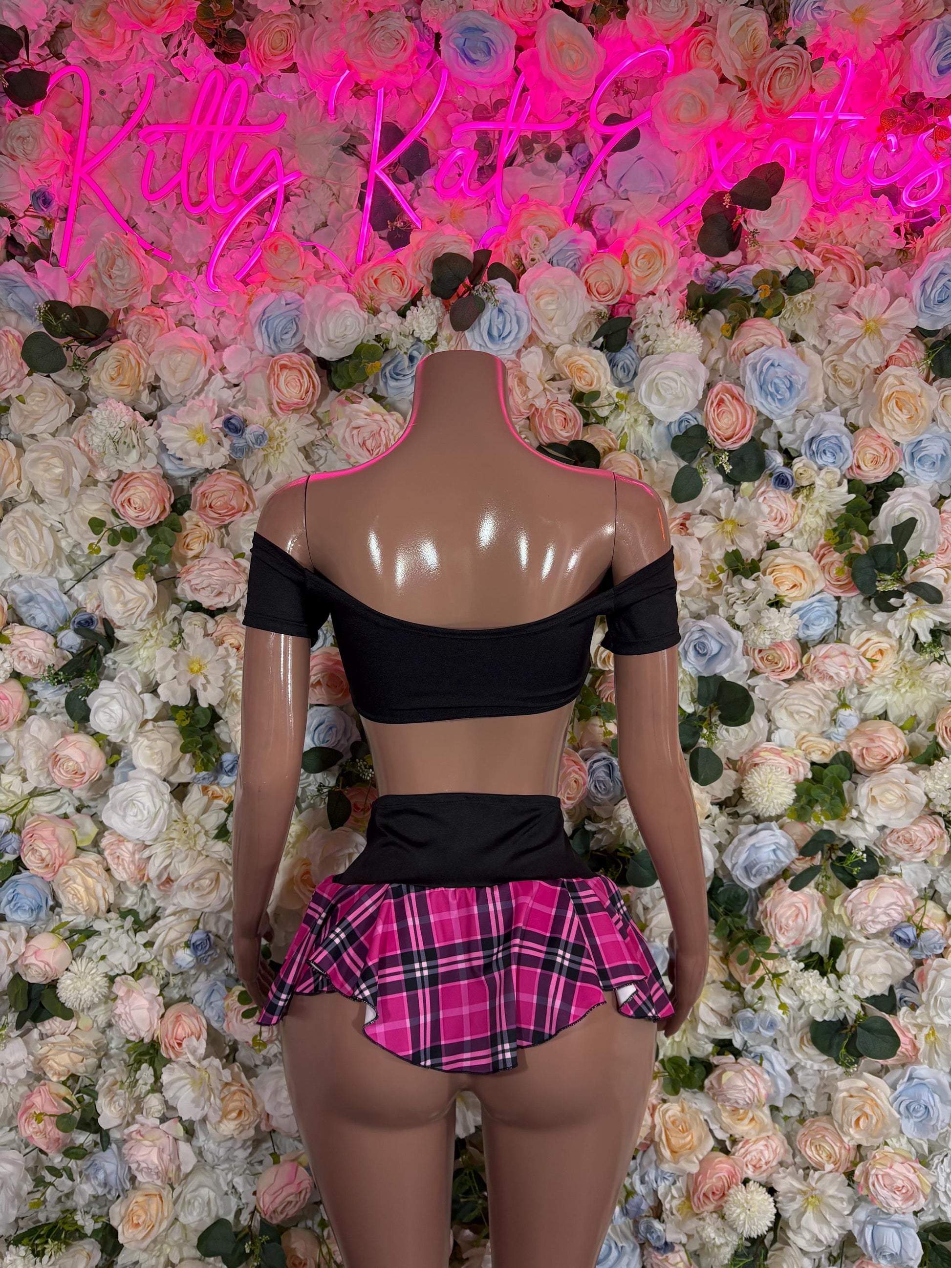 School girl Exotic Dancewear Pink Women’s Two-Piece Plaid Skirt Set
