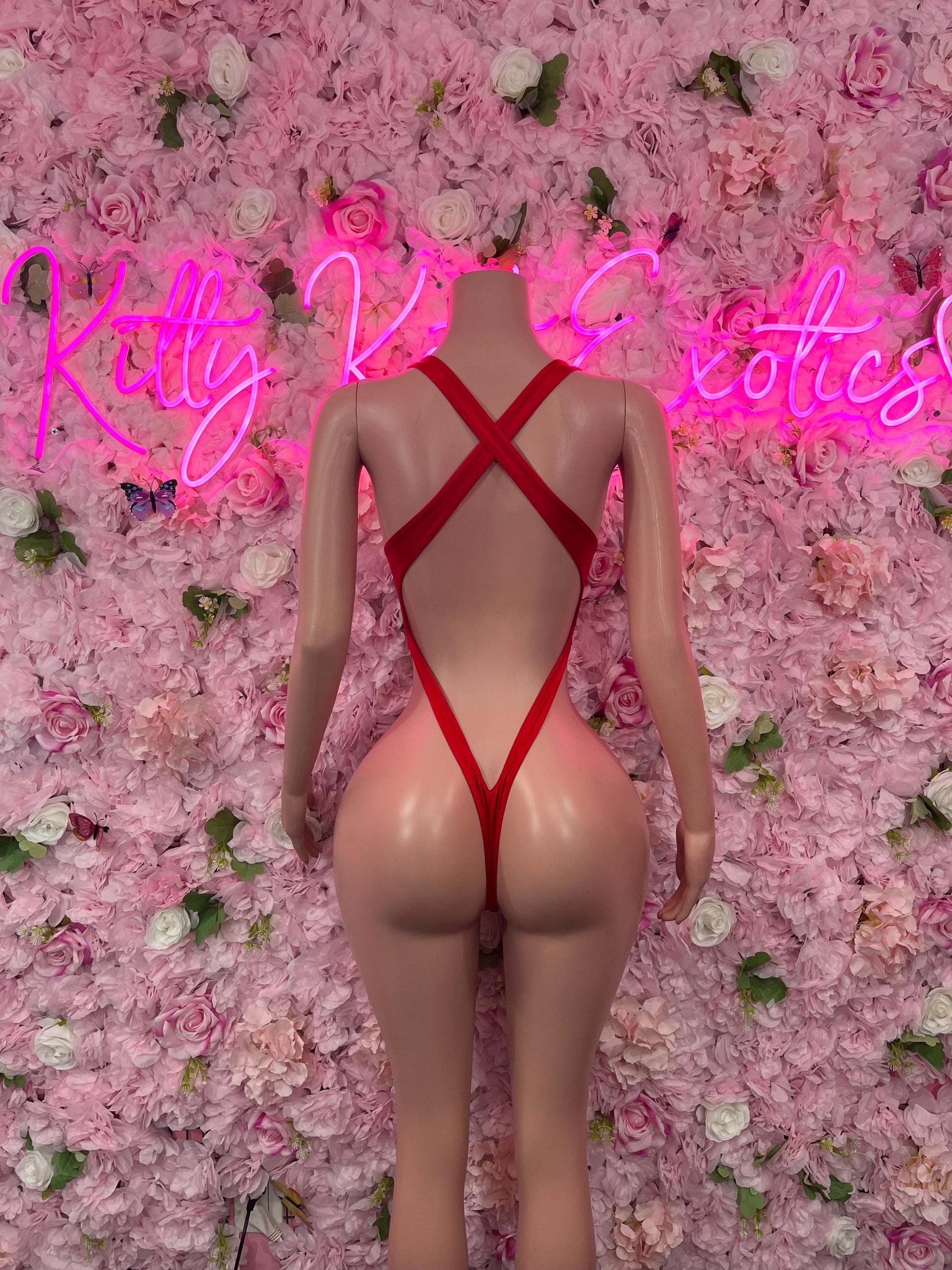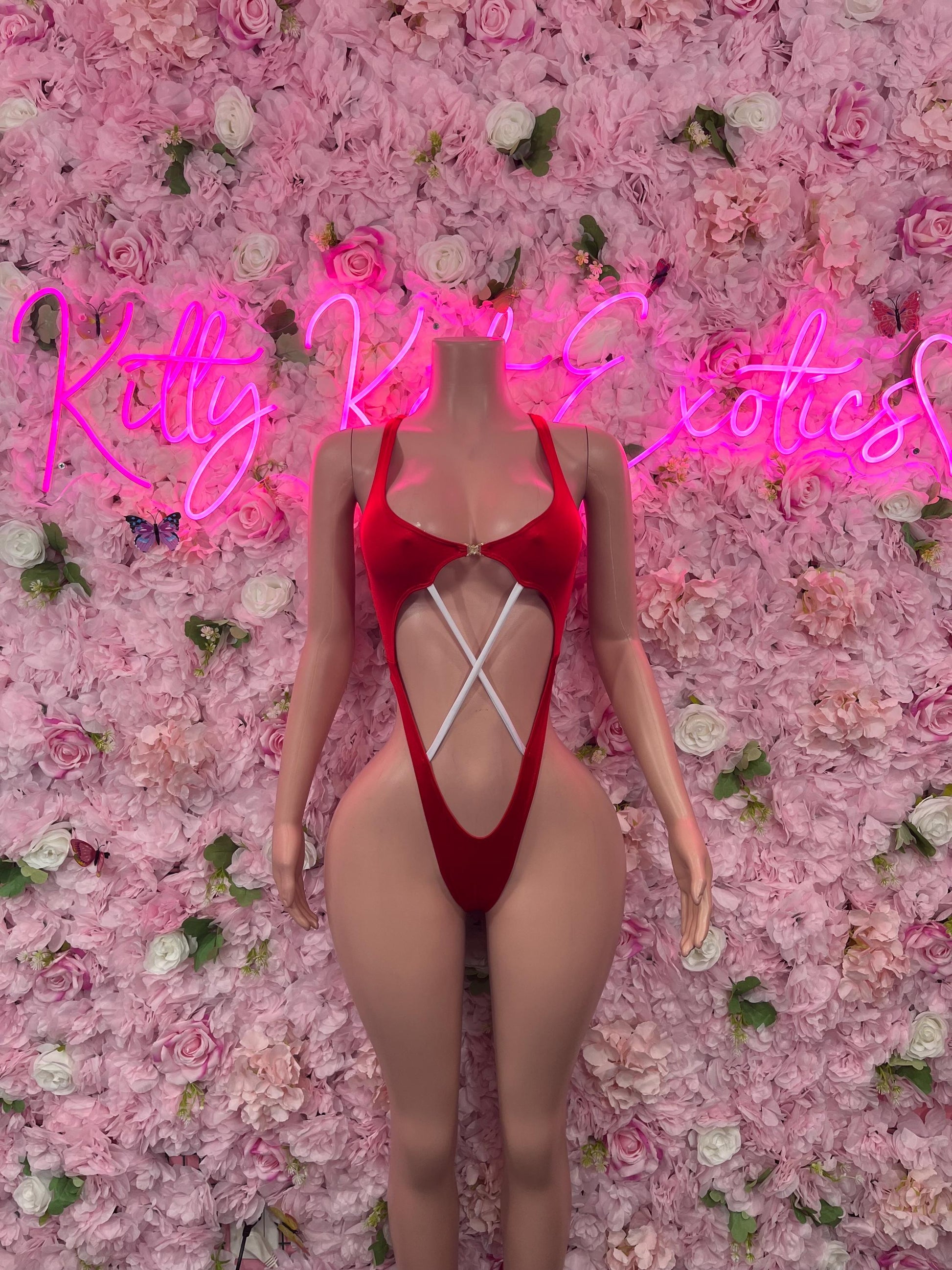 Sexy Santa Christmas Costume - One Piece Red Holiday Outfit - Festive Womens Christmas Lingerie