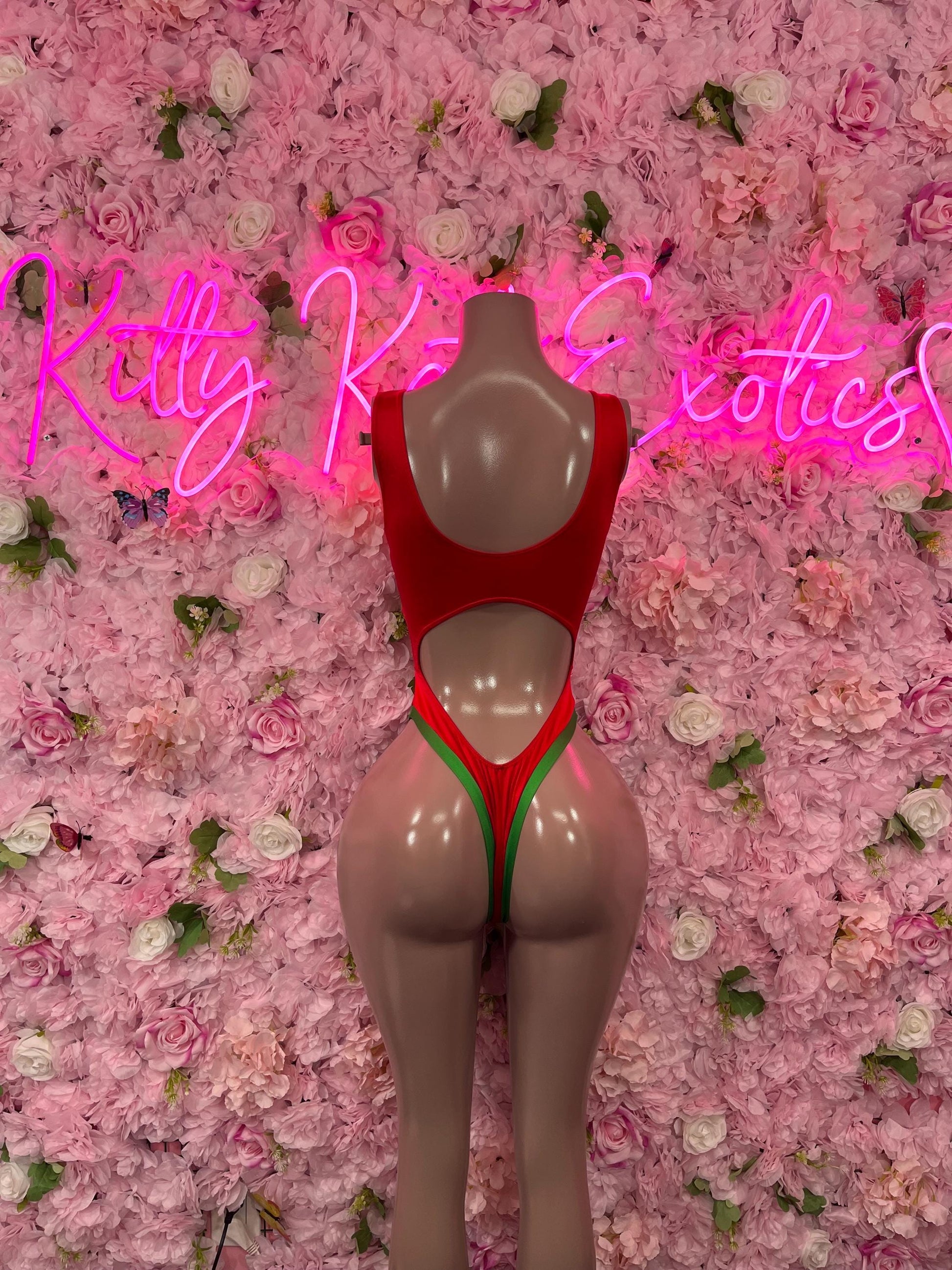 Sexy Santa Christmas Costume - One Piece Red Holiday Outfit - Festive Womens Christmas Lingerie