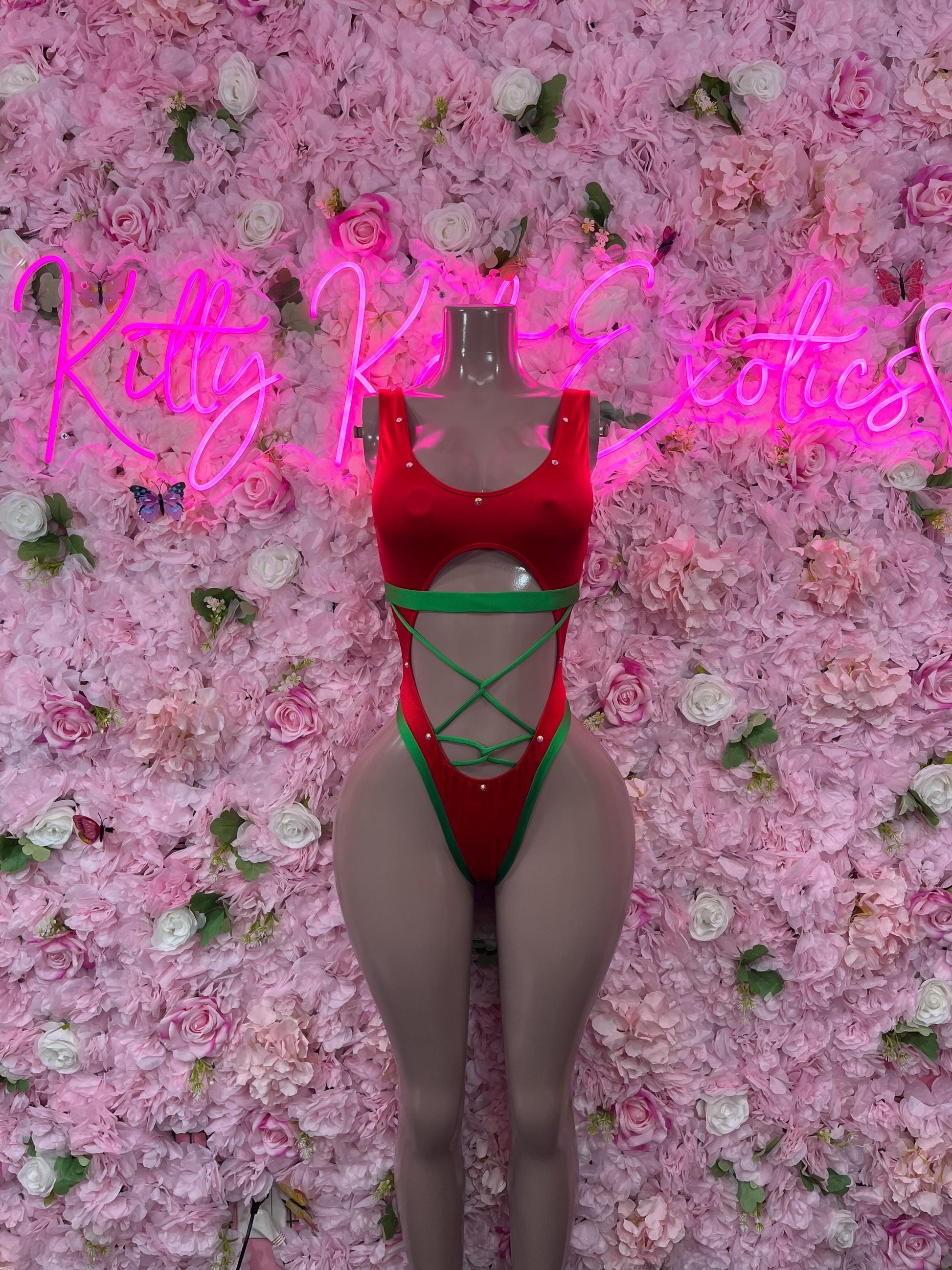 Sexy Santa Christmas Costume - One Piece Red Holiday Outfit - Festive Womens Christmas Lingerie Christmas