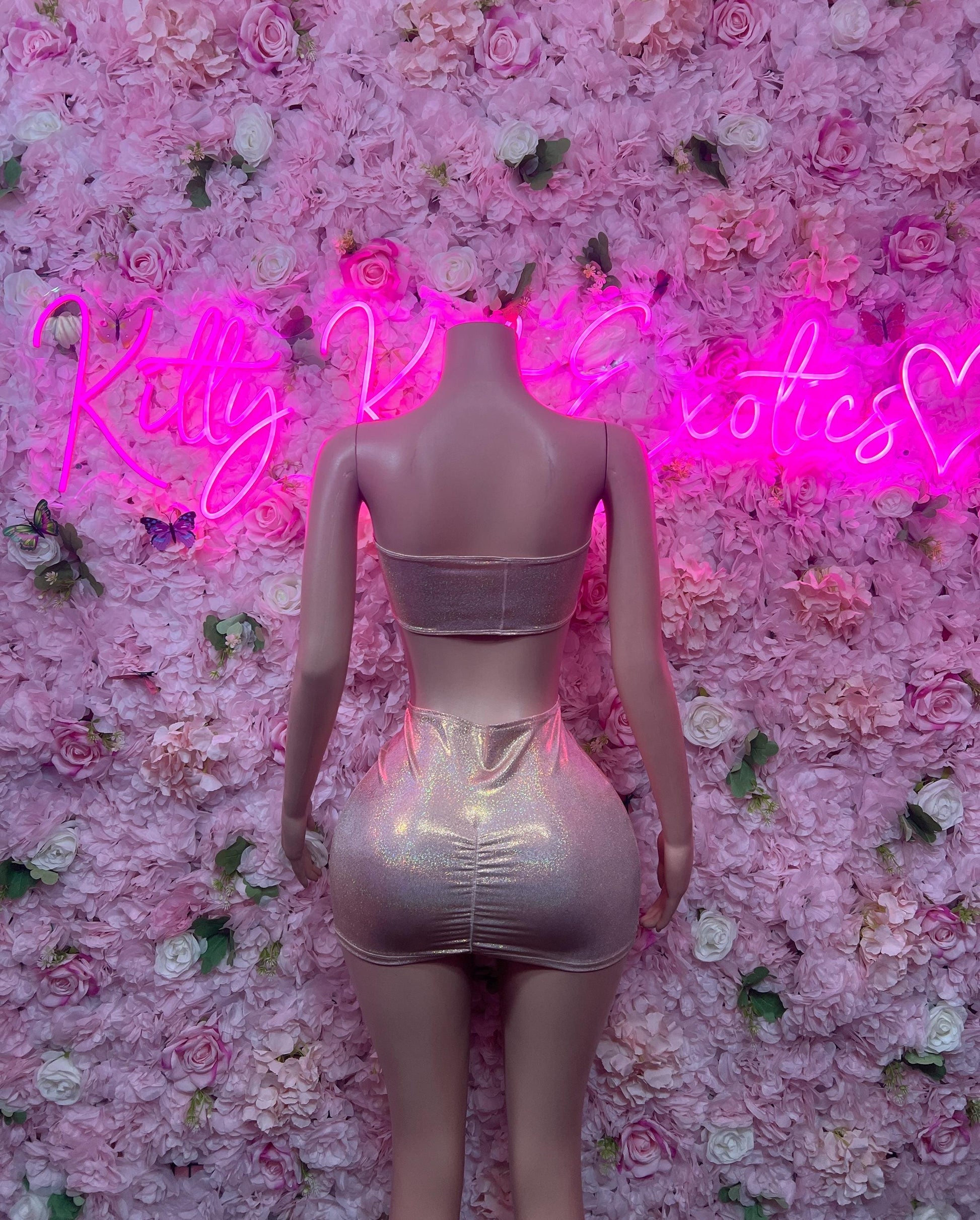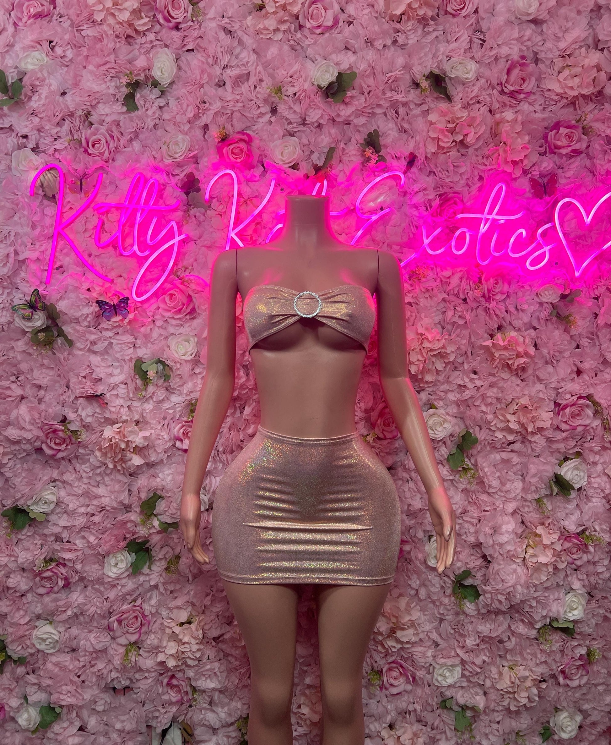 Sexy Two-Piece Metallic Skirt Set Clubwear, Rave Outfit, Exotic Dancewear, Festival Outfit, Bottlegirl & Waitress Uniform, Nightclub Party
