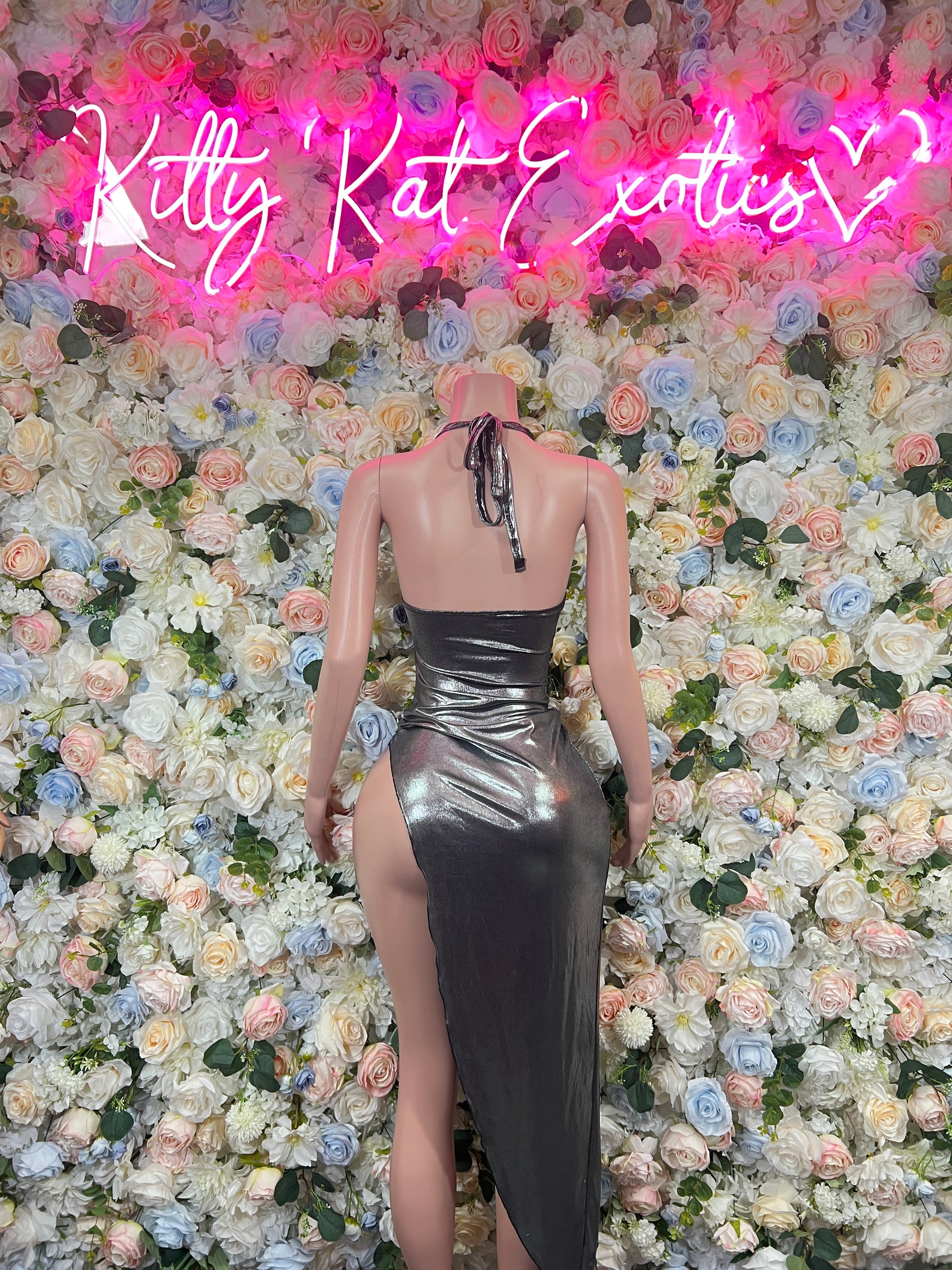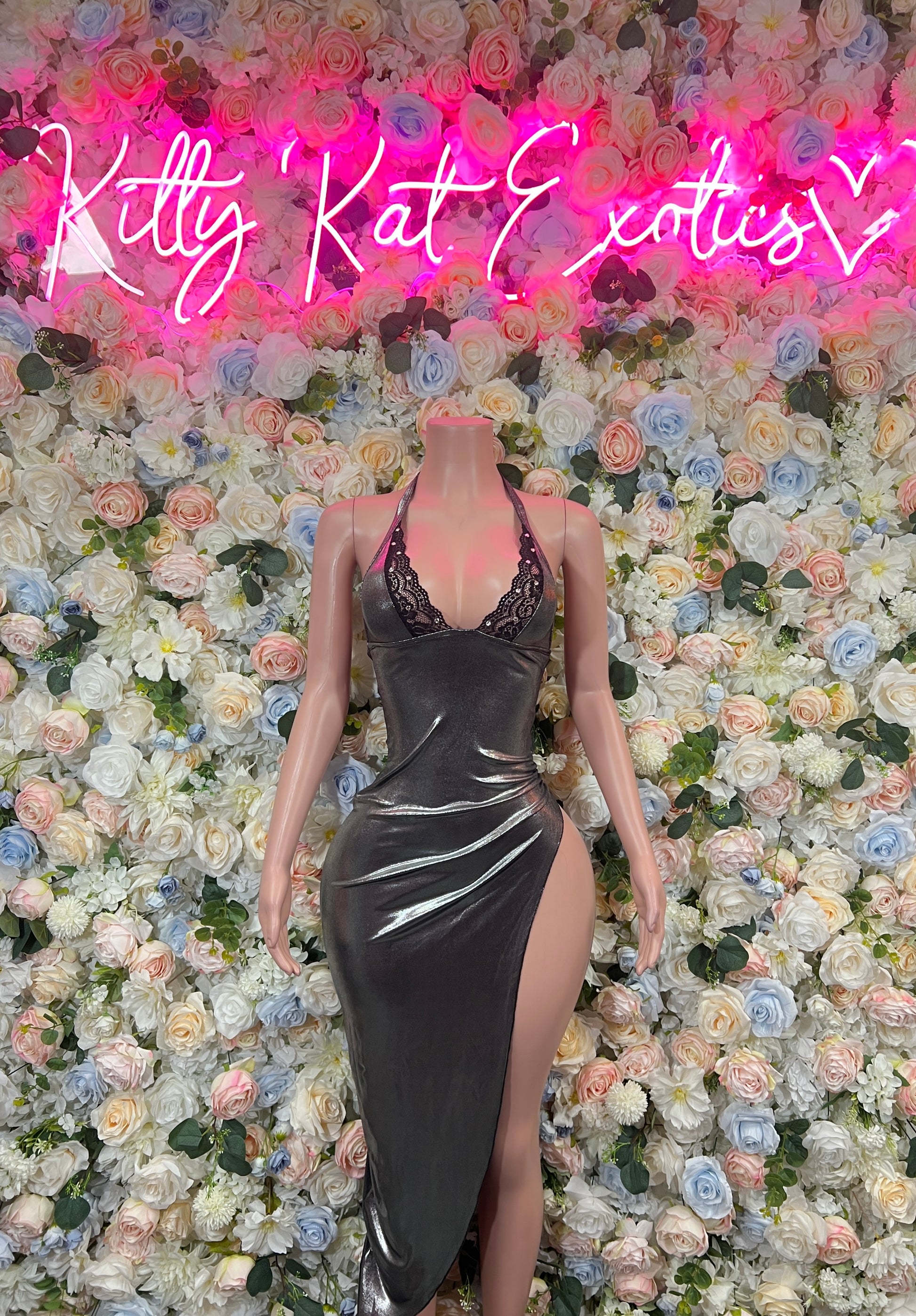 Silver Gown Exotic Dancewear Elegant and Sexy Evening Gown for Performers, Events, or Special Occasions