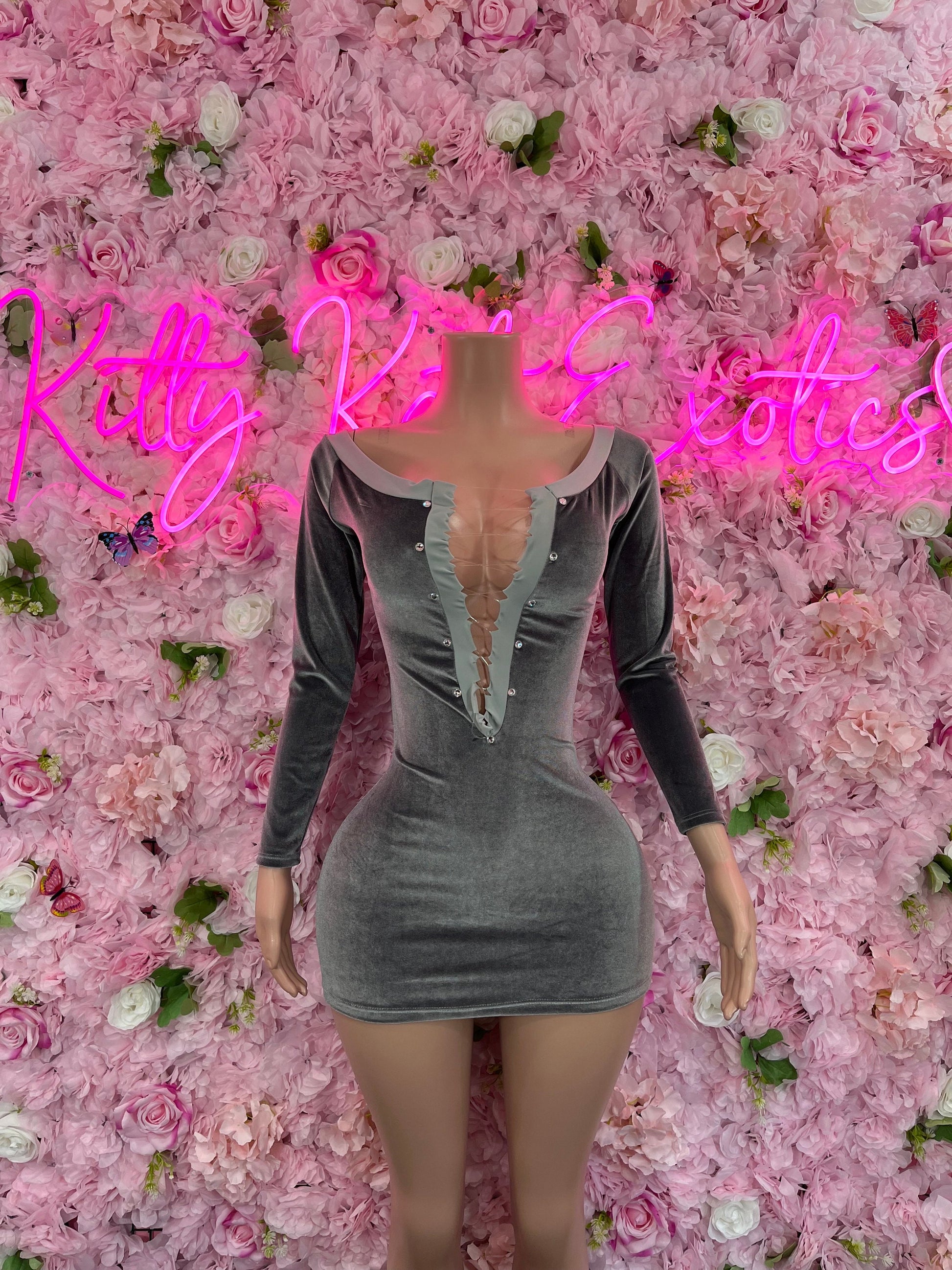 Silver LS Velvet Dress Soft and Elegant Party, Evening, or Casual Wear | Luxurious Women's Fashion Womens Clothing