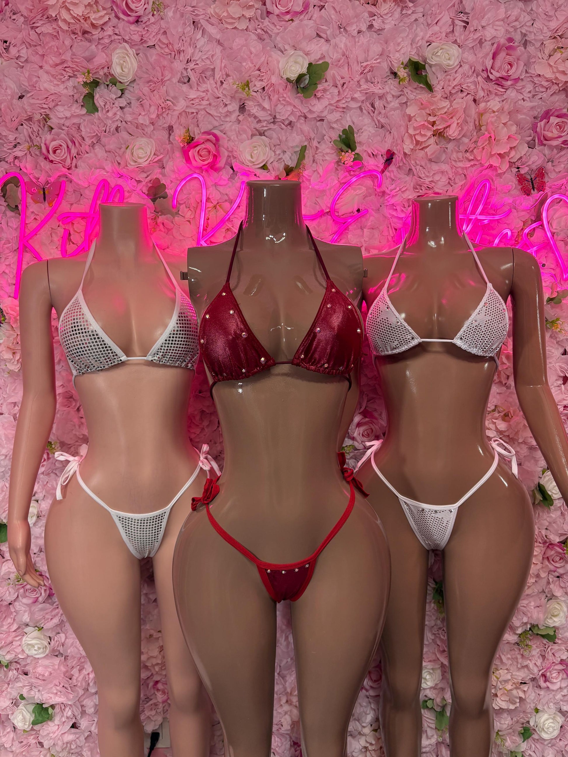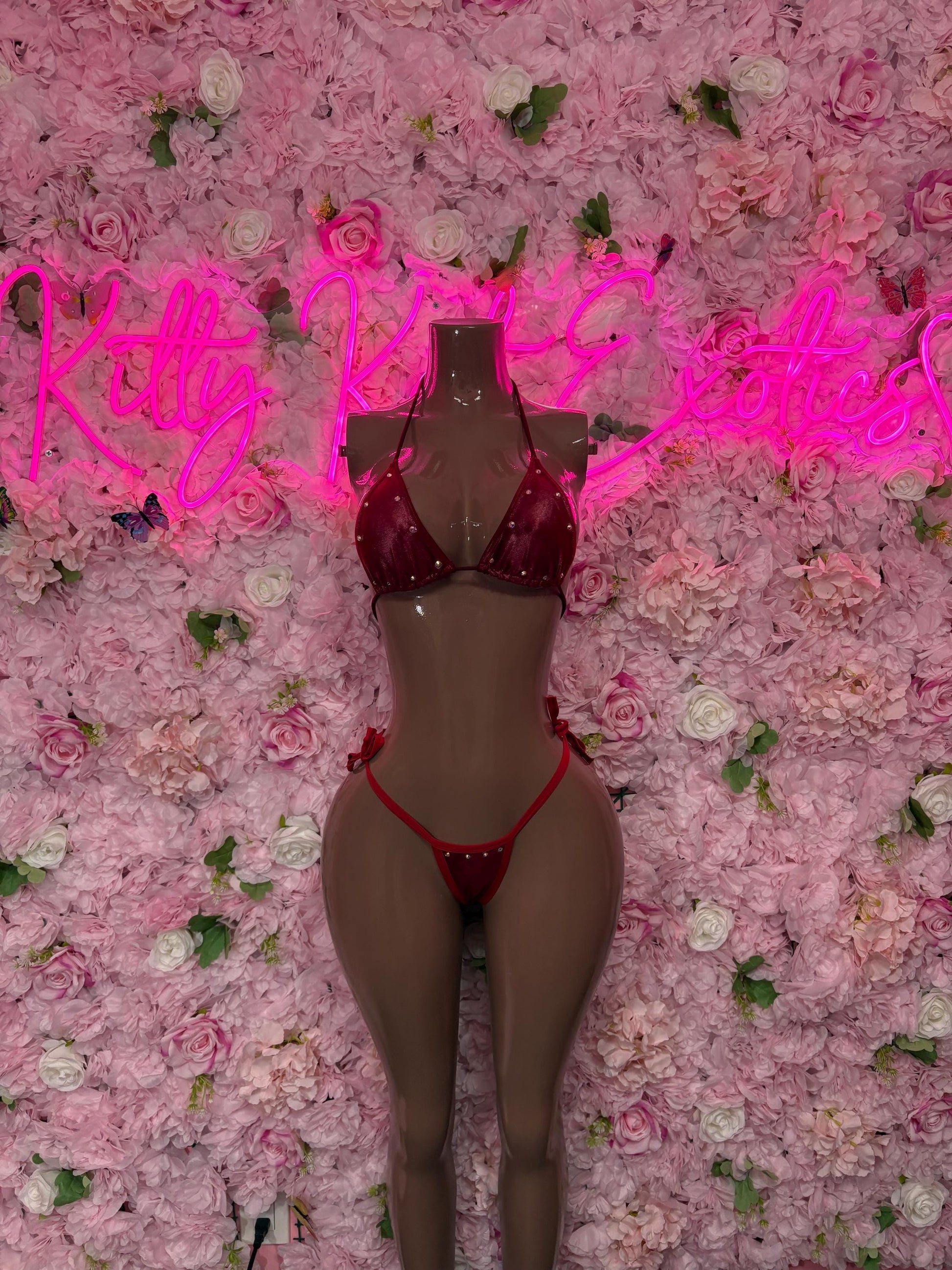 Summer Bikini Two-Piece Red Metallic Gstring Bikini Cute Swimsuit Set for Beach, Pool, or Vacation | Exotic Dancewear Festival wear