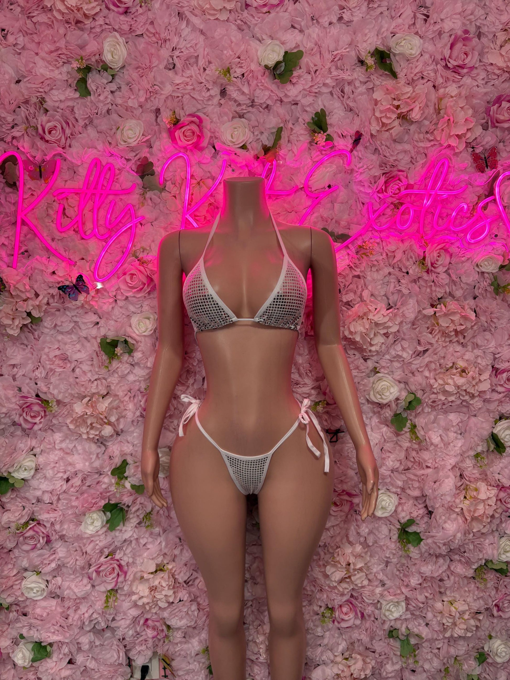 Summer Bikini Two-Piece White Metallic Gstring Bikini Cute Swimsuit Set for Beach, Pool, or Vacation | Exotic Dancewear Festival wear