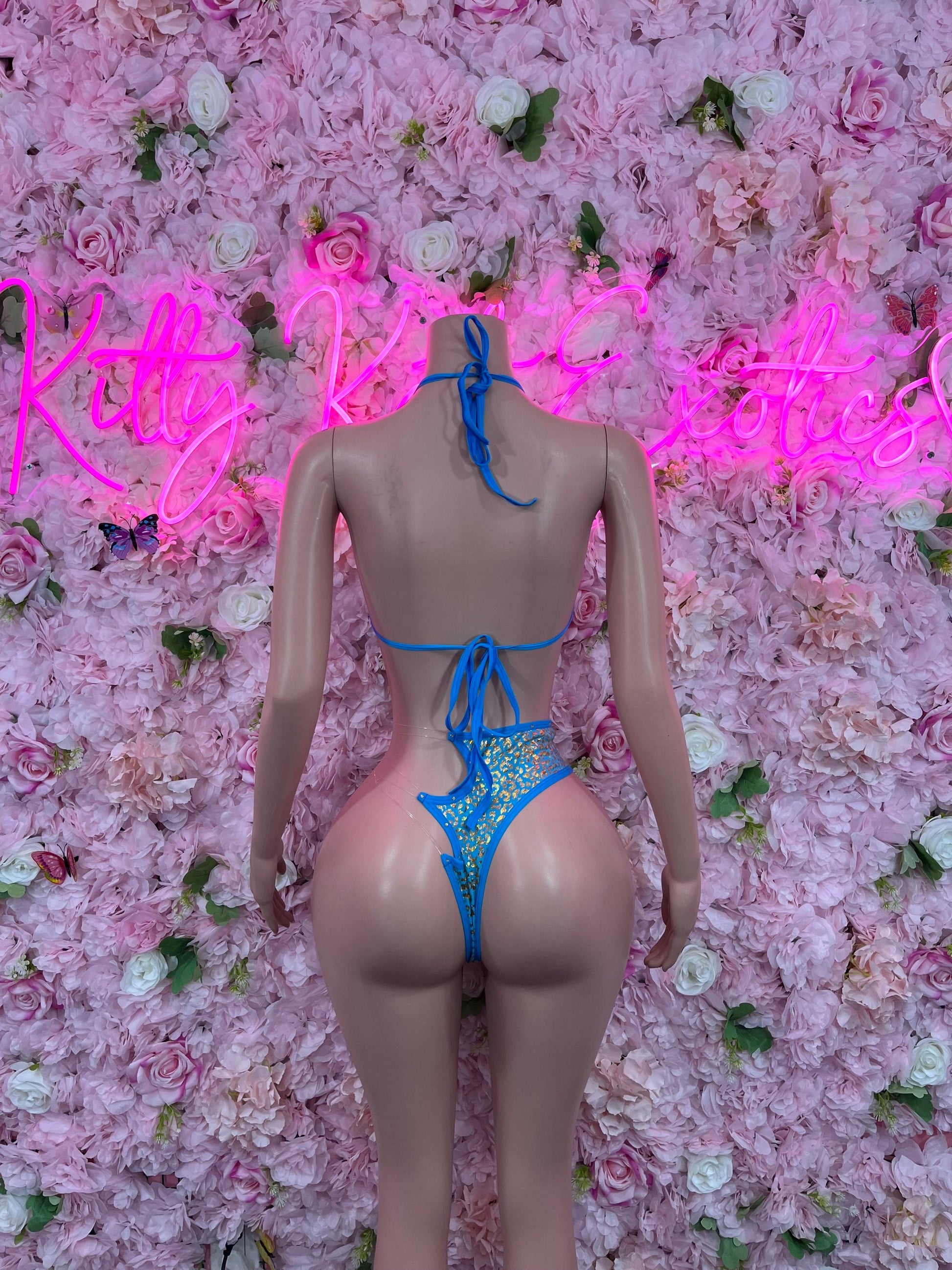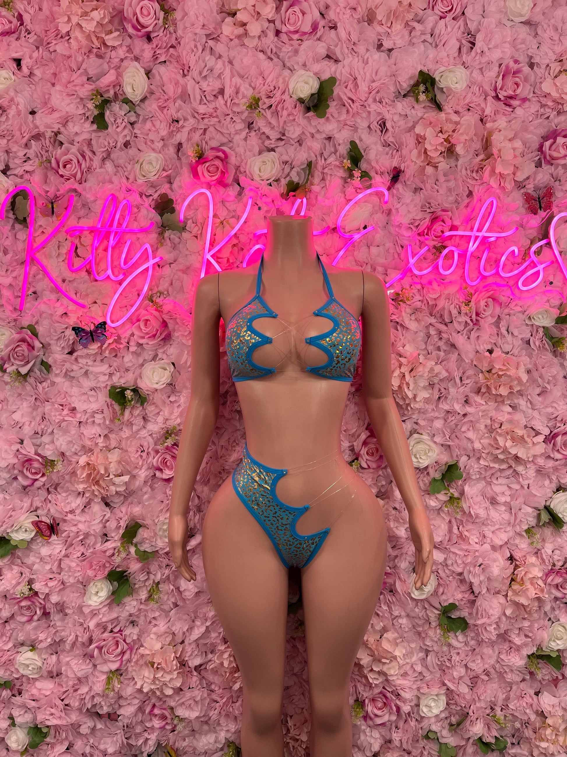 Two Piece Baby Blue Cheeta Print Bikini Bottlegirl Set Dancewear Festival Wear