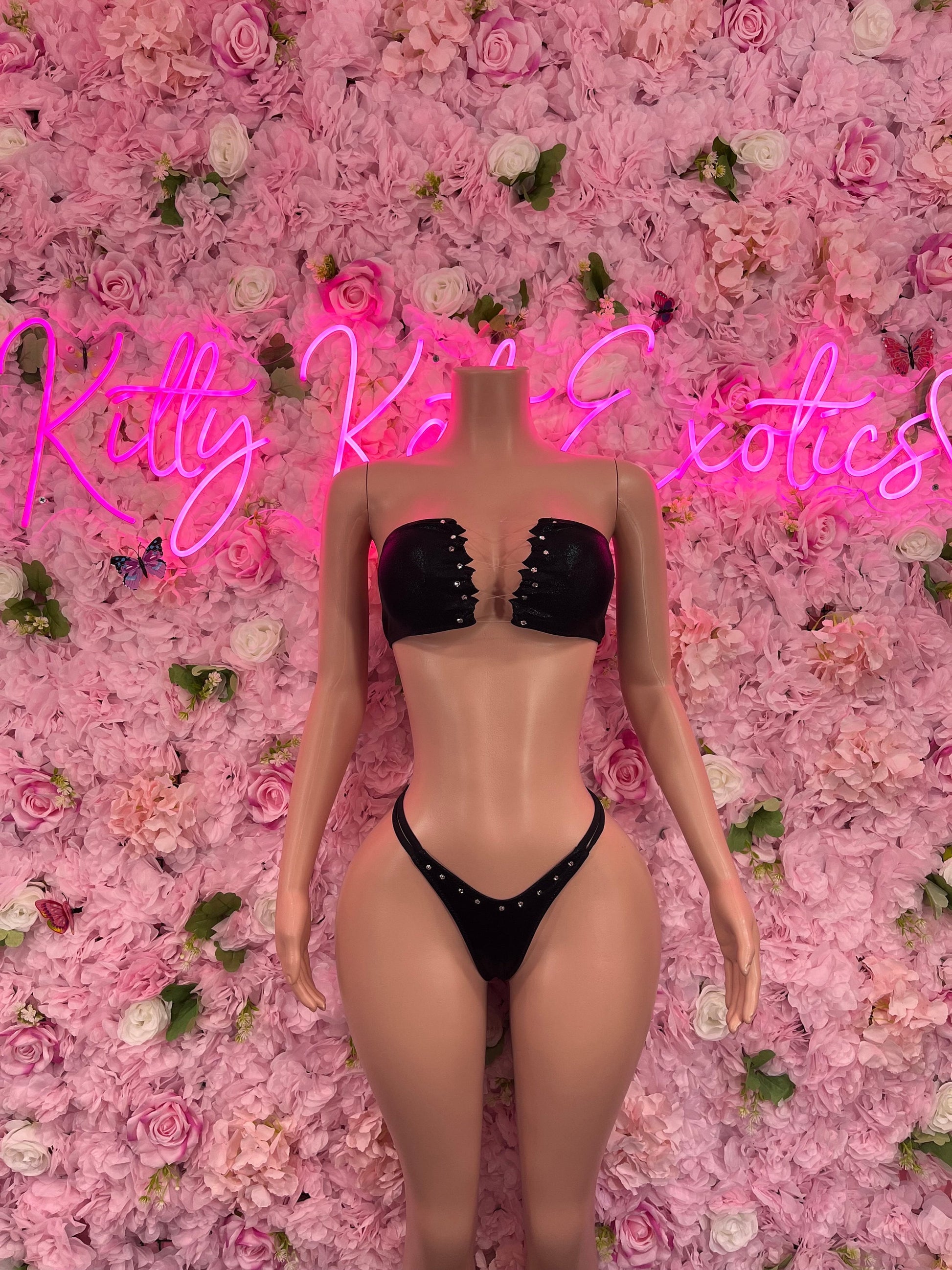 Two-Piece Black Bikini Cute Swimsuit Set for Beach, Pool, or Vacation | Exotic Dancewear Festival wear