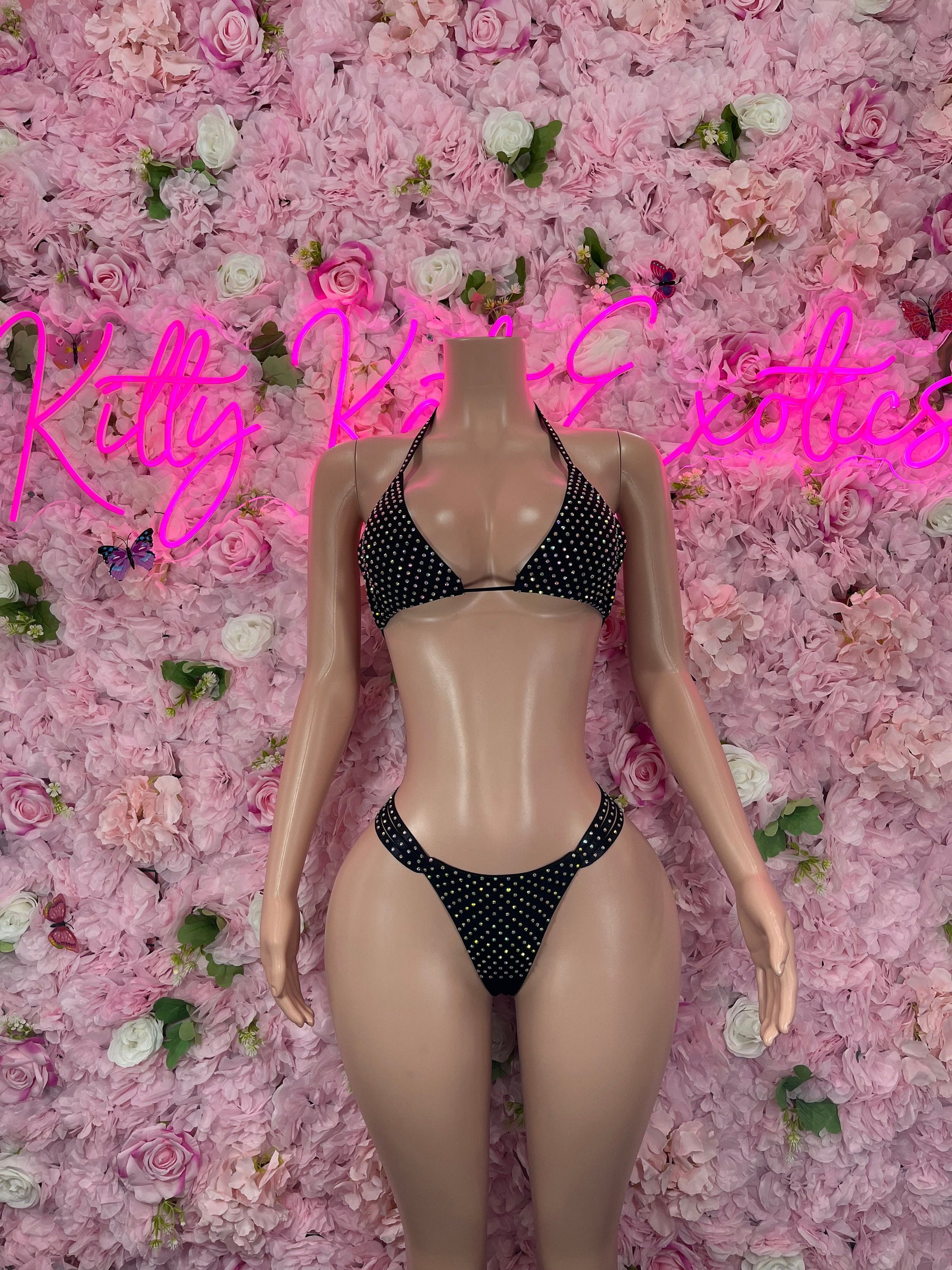 Two-Piece Black Rhinestone Bikini Cute Swimsuit Set for Beach, Pool, or Vacation | Exotic Dancewear Festival wear