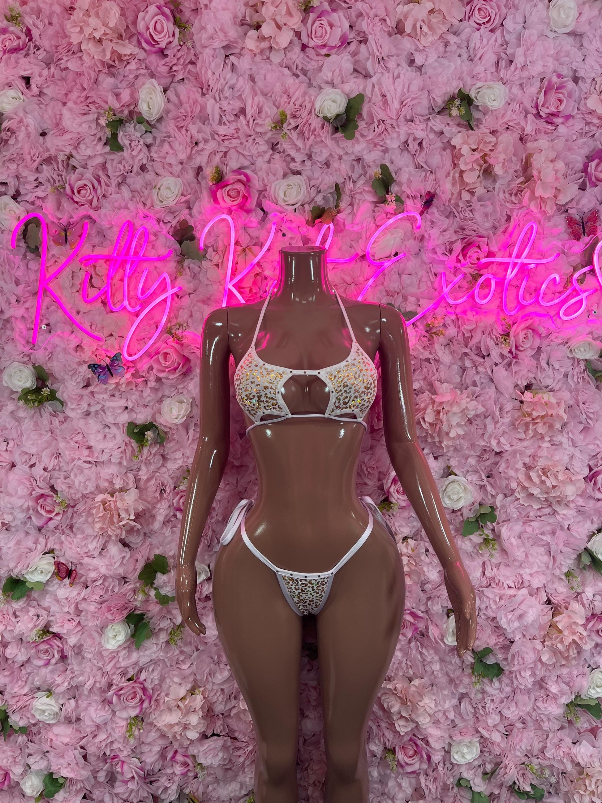 Two-Piece Cheeta Print Bikini Cute Swimsuit Set for Beach, Bottle girl, or Vacation | Exotic Dancewear Festival wear
