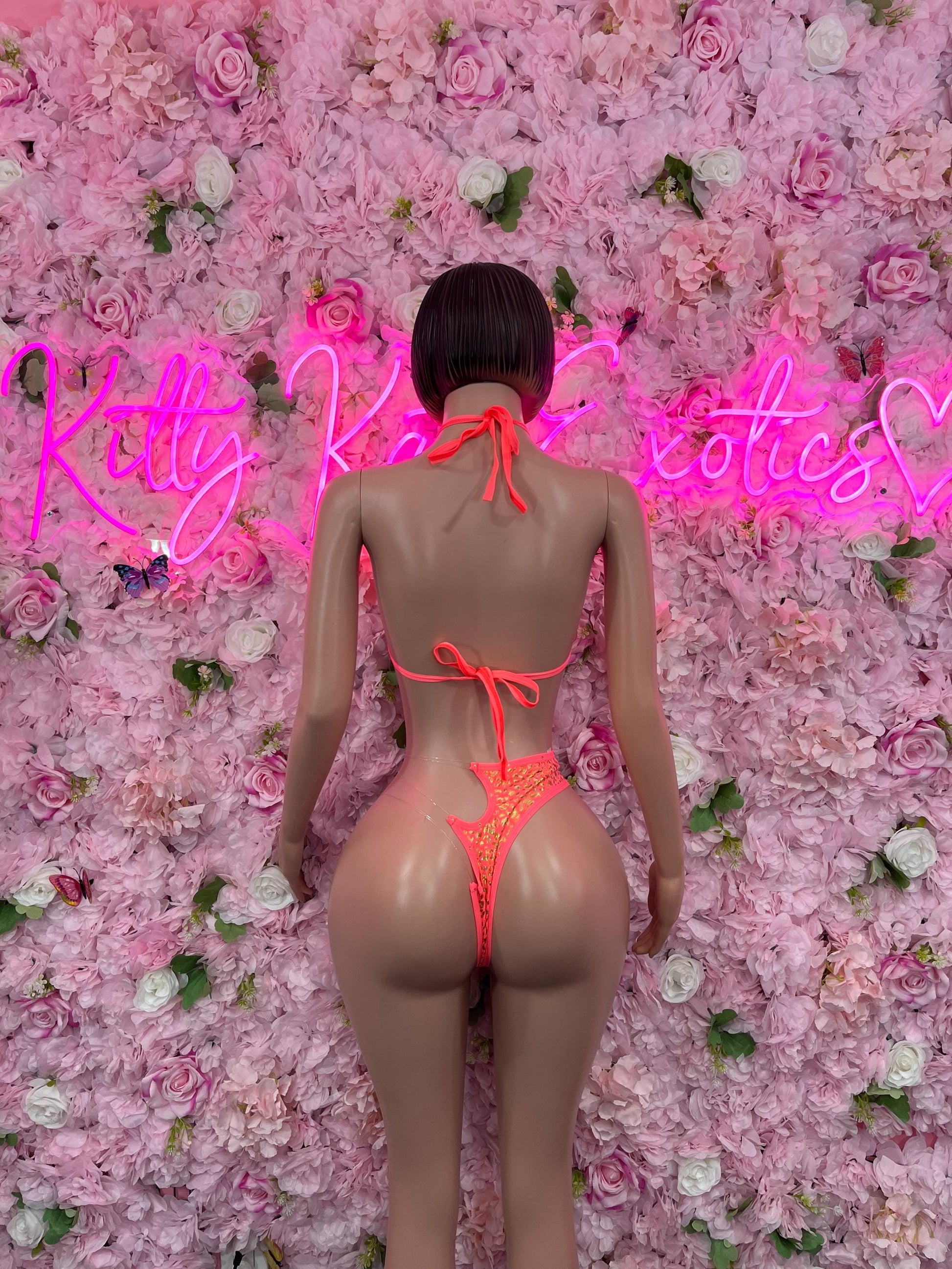 Two Piece Coral/Gold Metallic Bikini Bottlegirl Bartender Outfit Festivalwear