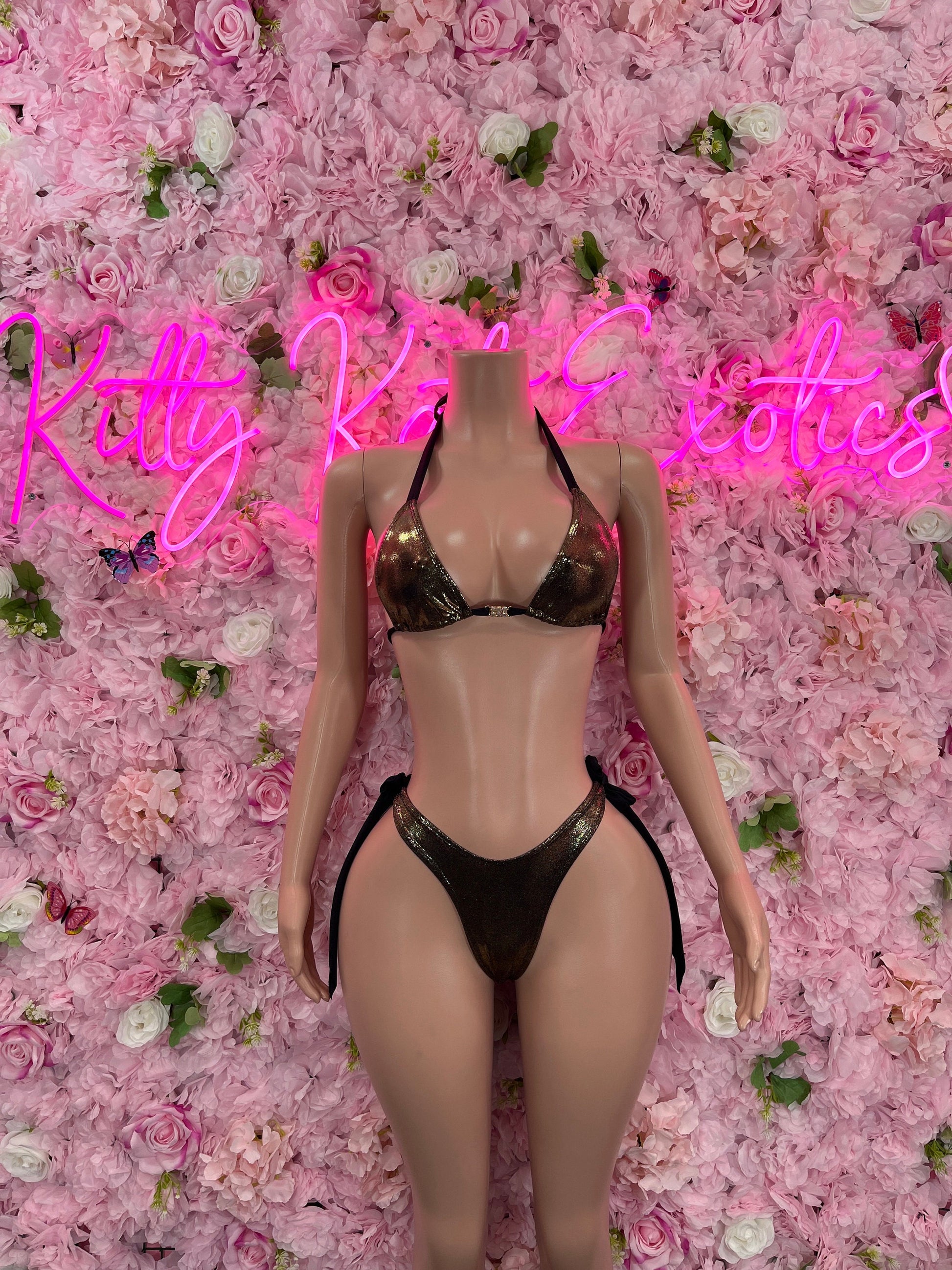 Two-Piece Gold Metallic Bikini Cute Swimsuit Set for Beach, Pool, or Vacation | Exotic Dancewear Festival wear